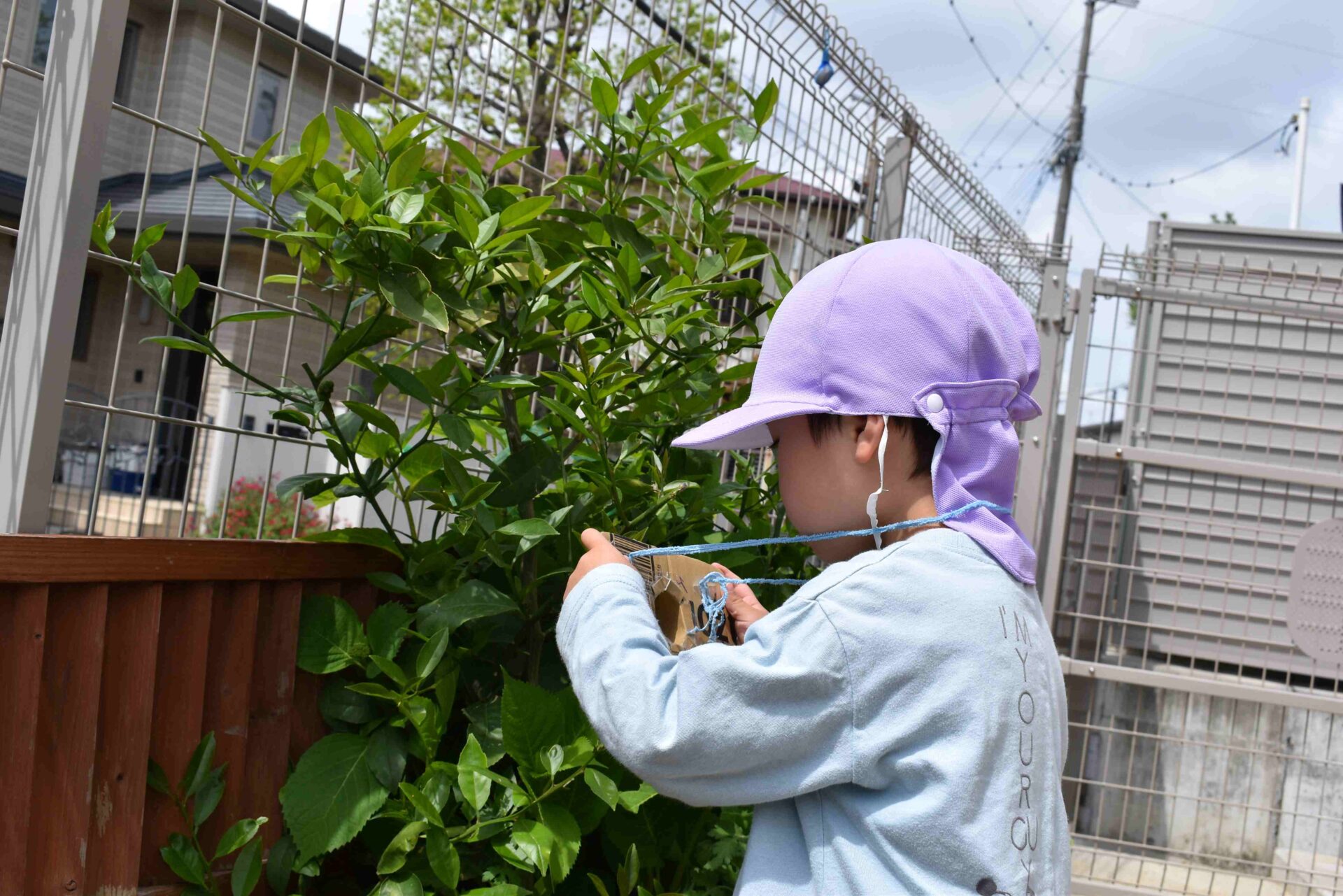 ミカンの木によくついているのを見かけますが、保育園のレモンの木も注目スポットです!