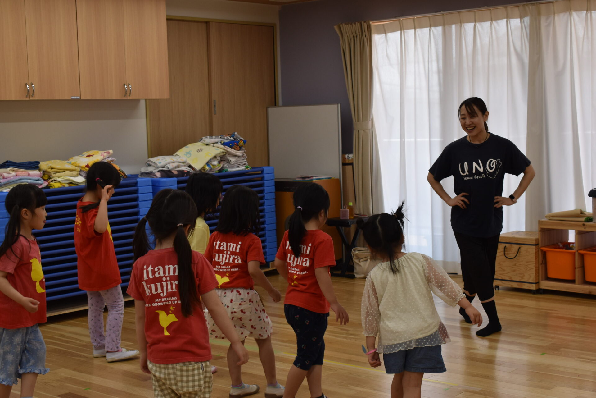 梅ノ木くじら保育園では、月に一度外部の講師に来てもらい、ダンスレッスンを行っています。