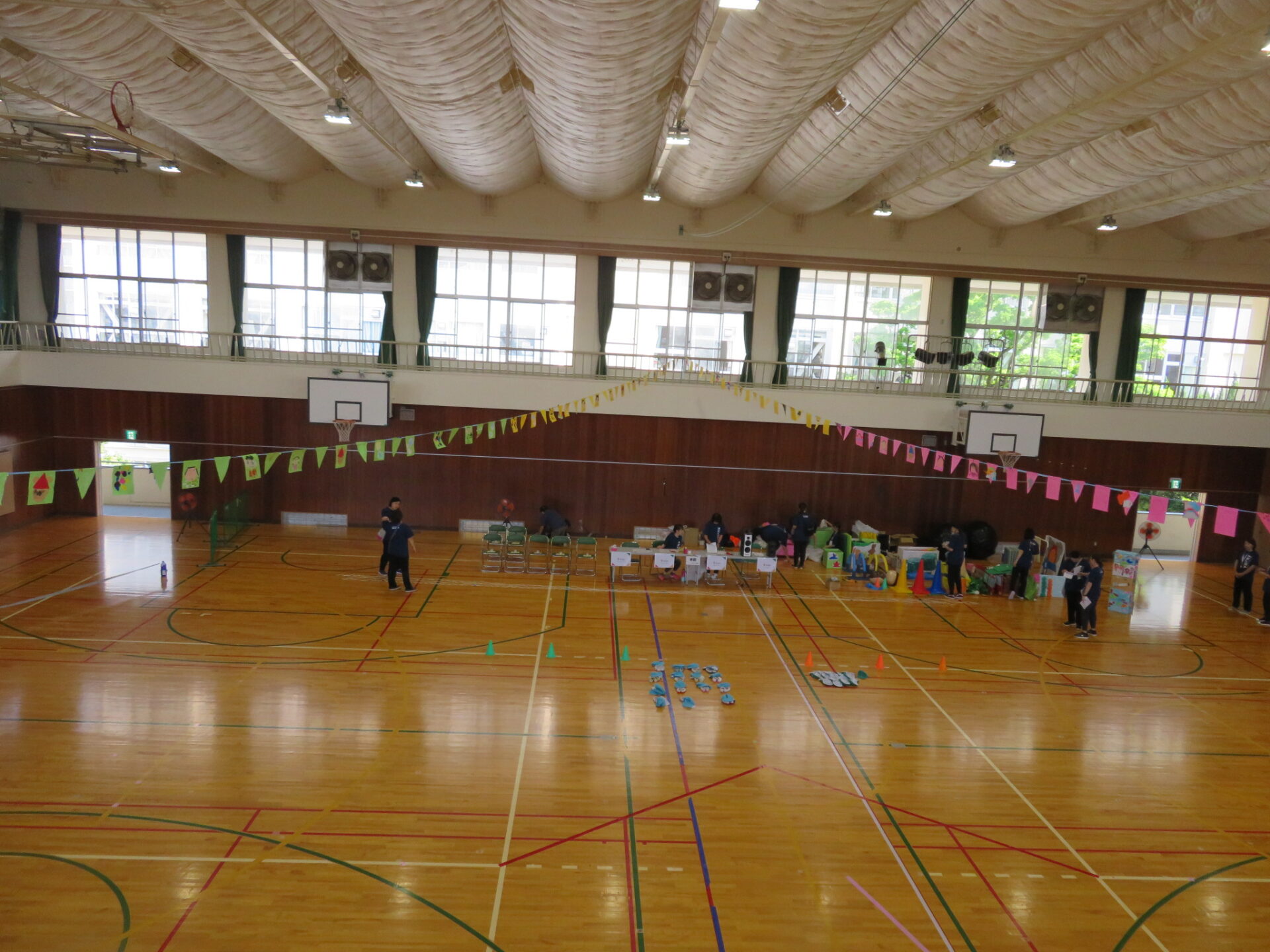 ロゴに合わせて万国旗も同じ3色で装飾しました。