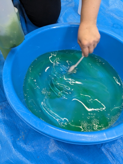こうして、大きなタライ4つ分のスライムが完成です。