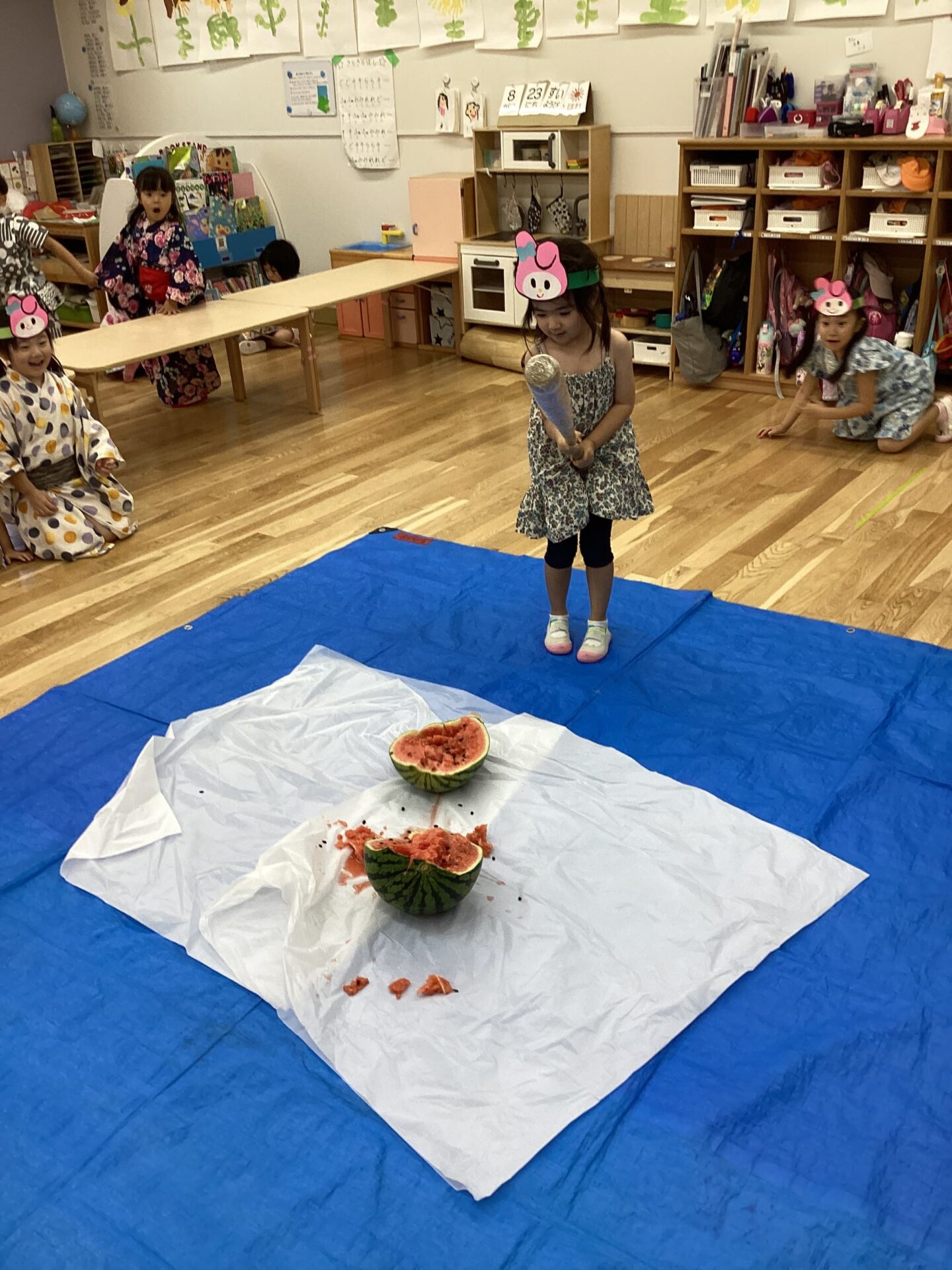 今回は、5歳児クラスのスイカ割の様子をお届けします☆