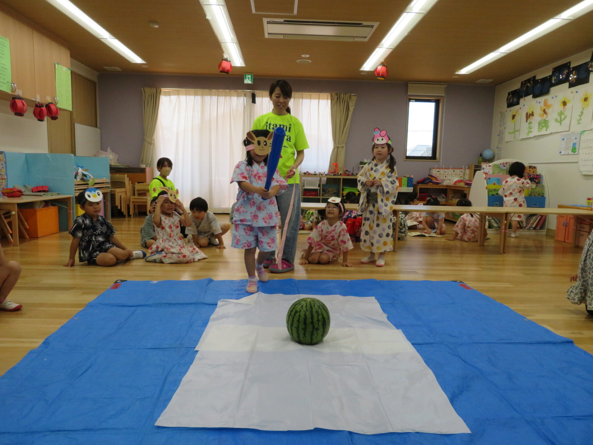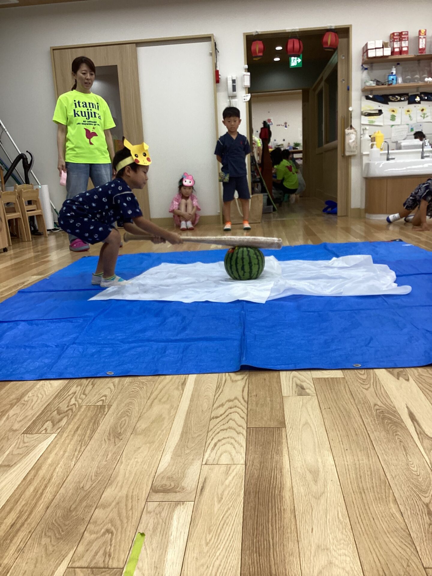 2歳児からは本物のスイカを割ることに挑戦します!