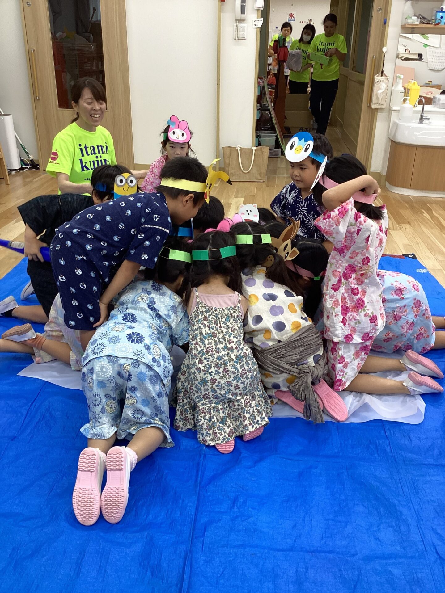 「目隠しをしてもいいし、しなくてもいいよ!」と、目隠し用のハチマキを用意していたのですが、