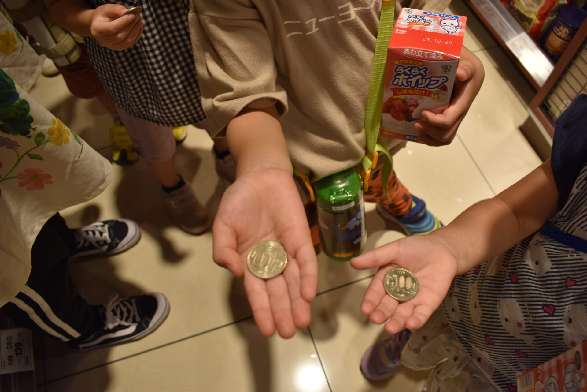 みんなに一枚ずつ500円を渡します。