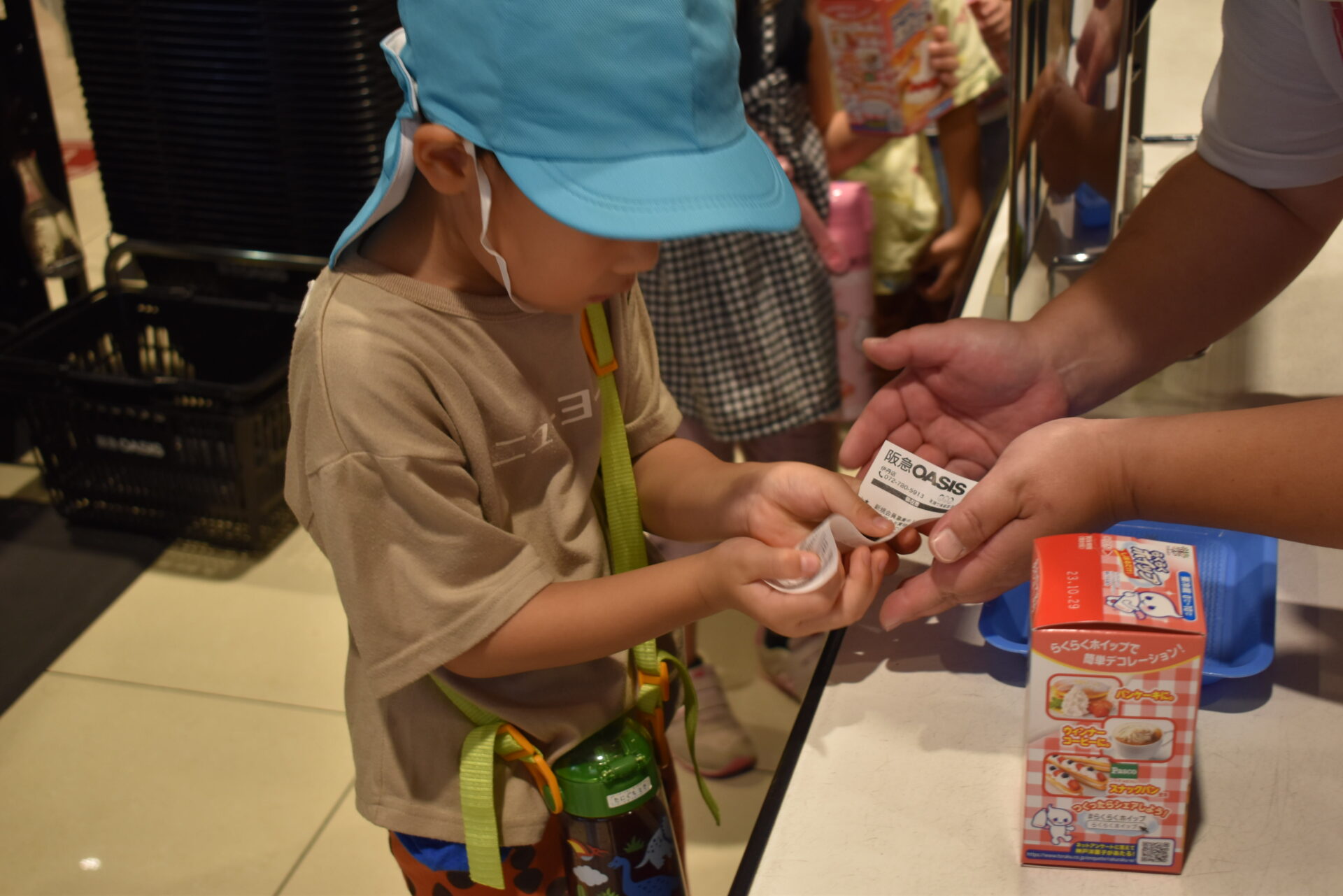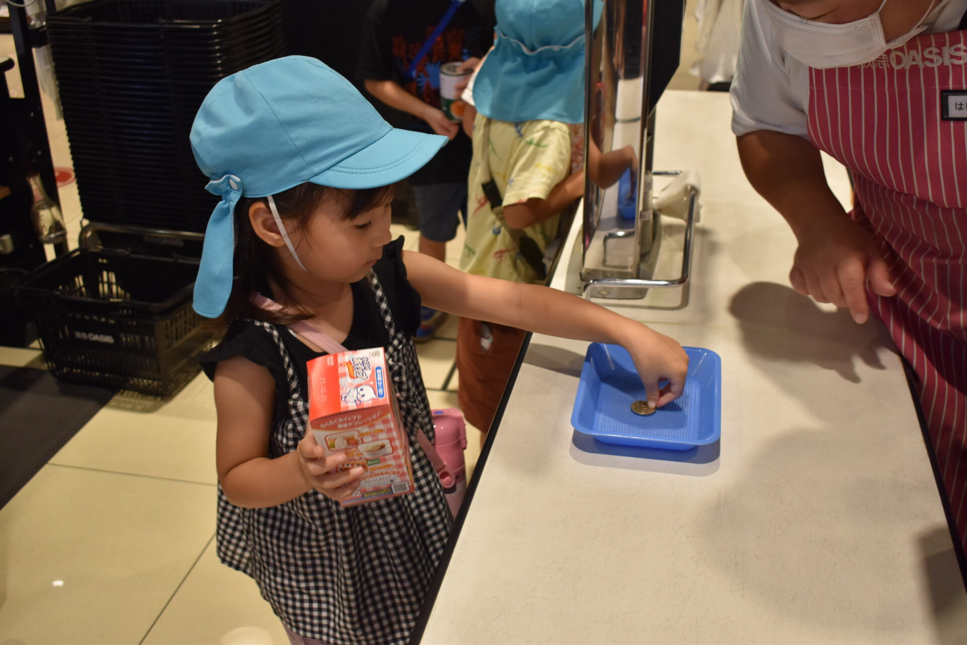 現金買い物も機械ではなく、手渡しでのやり取りができるスーパーなので子ども達にとても良い経験になりました。