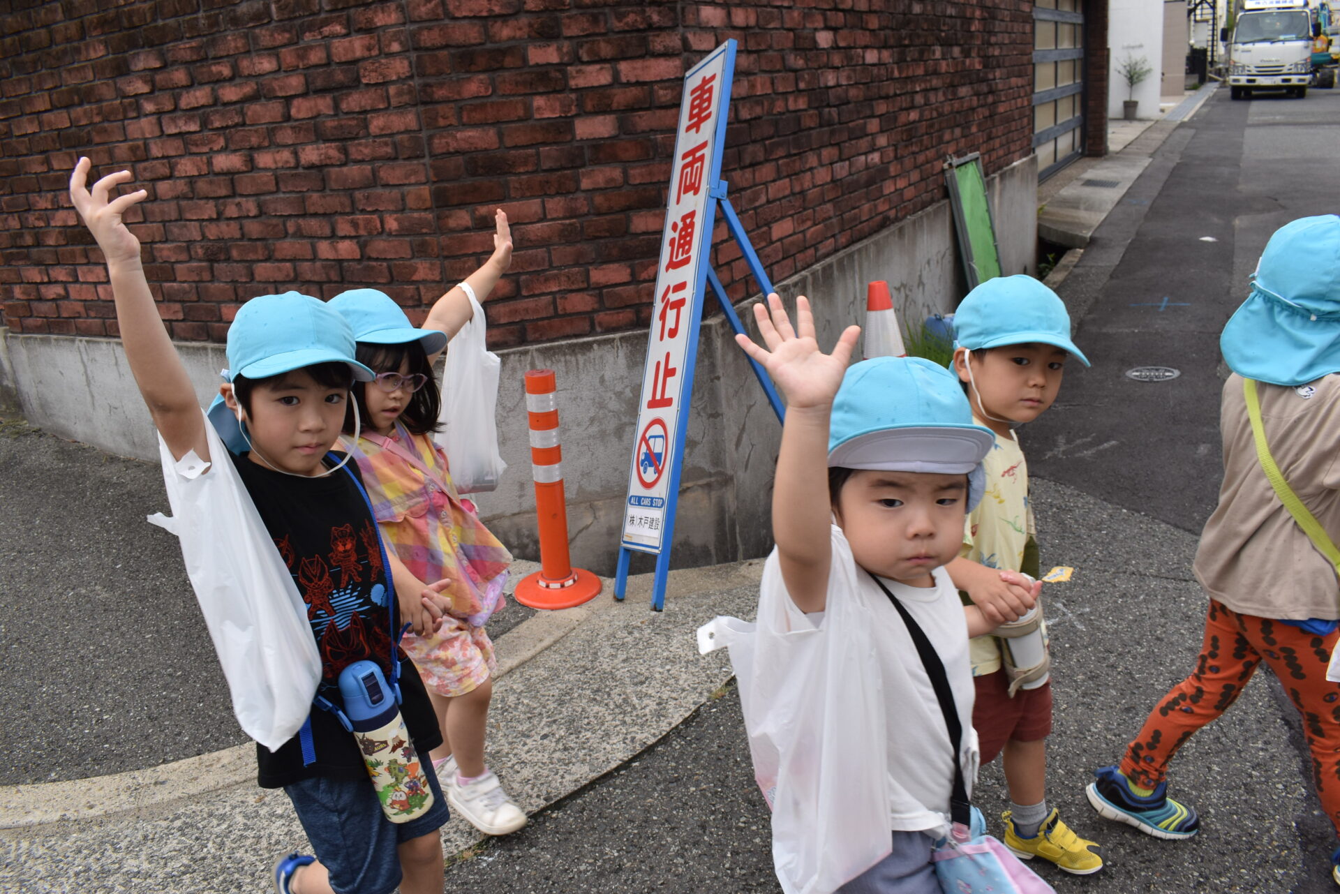 でも道を渡る時は、しっかり手をあげます。