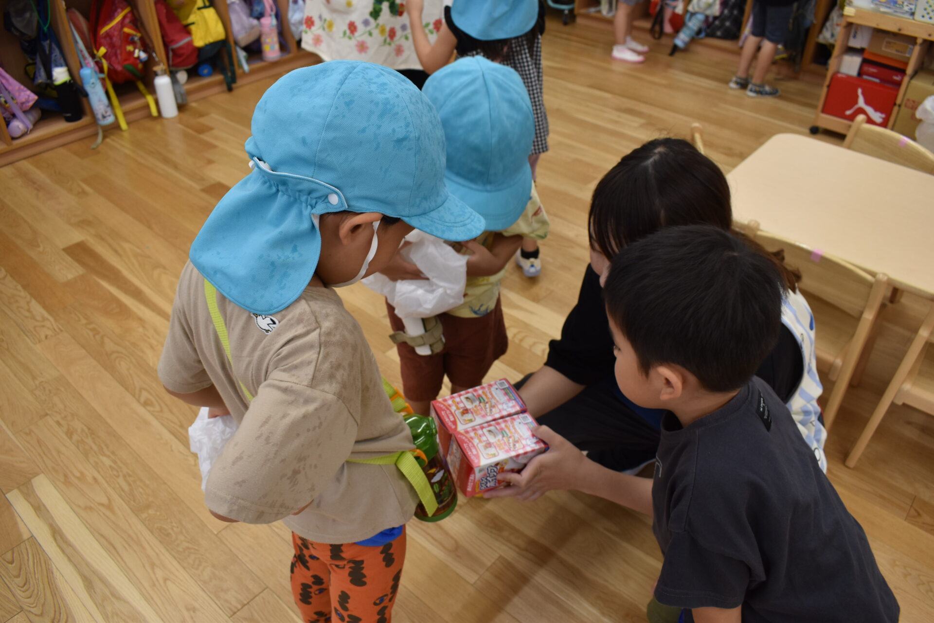 中には、落とさないように両手で慎重に受け取る子もいました。