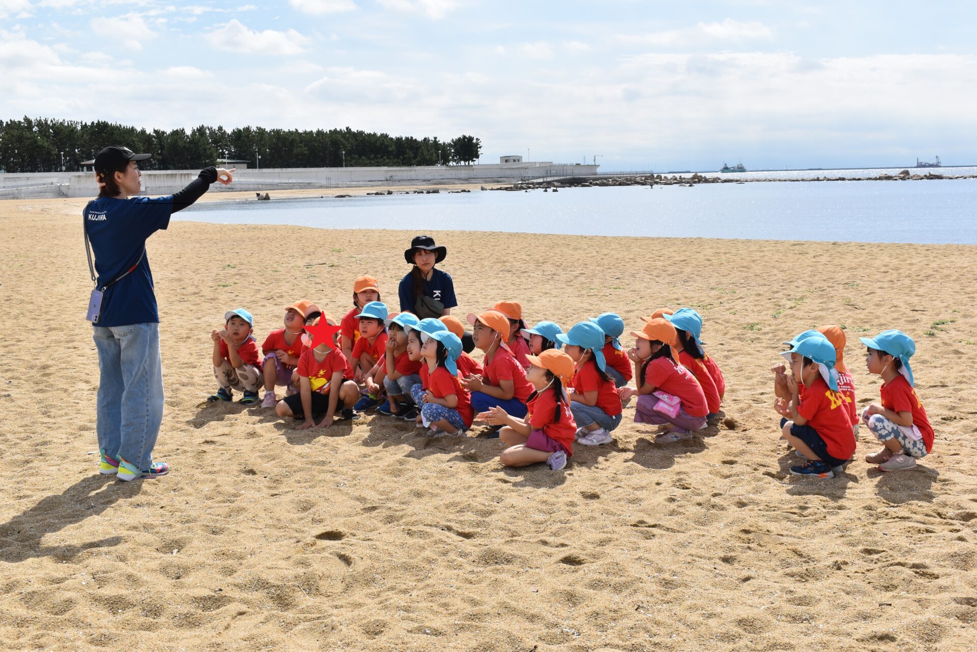 10月4日に、4.5歳児クラスの子ども達と、芦屋浜にゲルニカで使用する『宝物』を集めに行ってきました。
