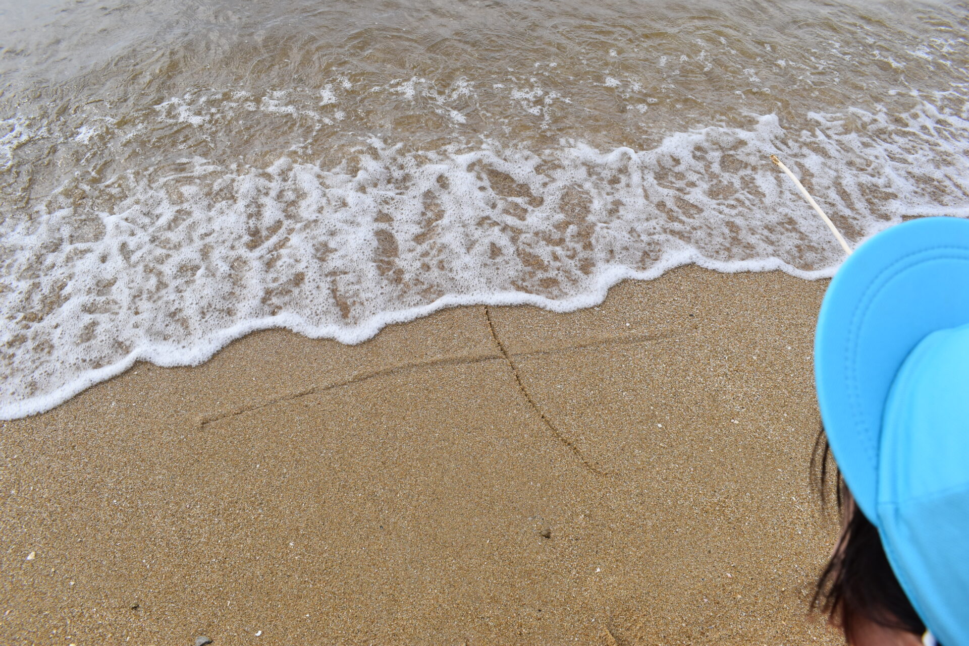 探している時に、波打ち際で「見といてね~」と、線を書いてみると、