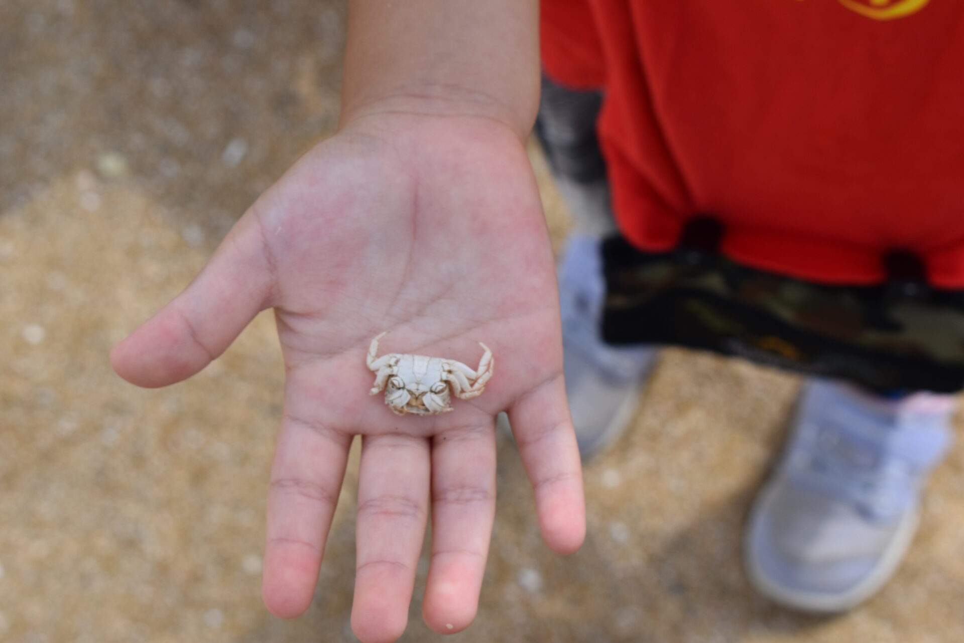 カニだけど、はさみがない……足が何本等、観察して学ぶことも沢山あります。