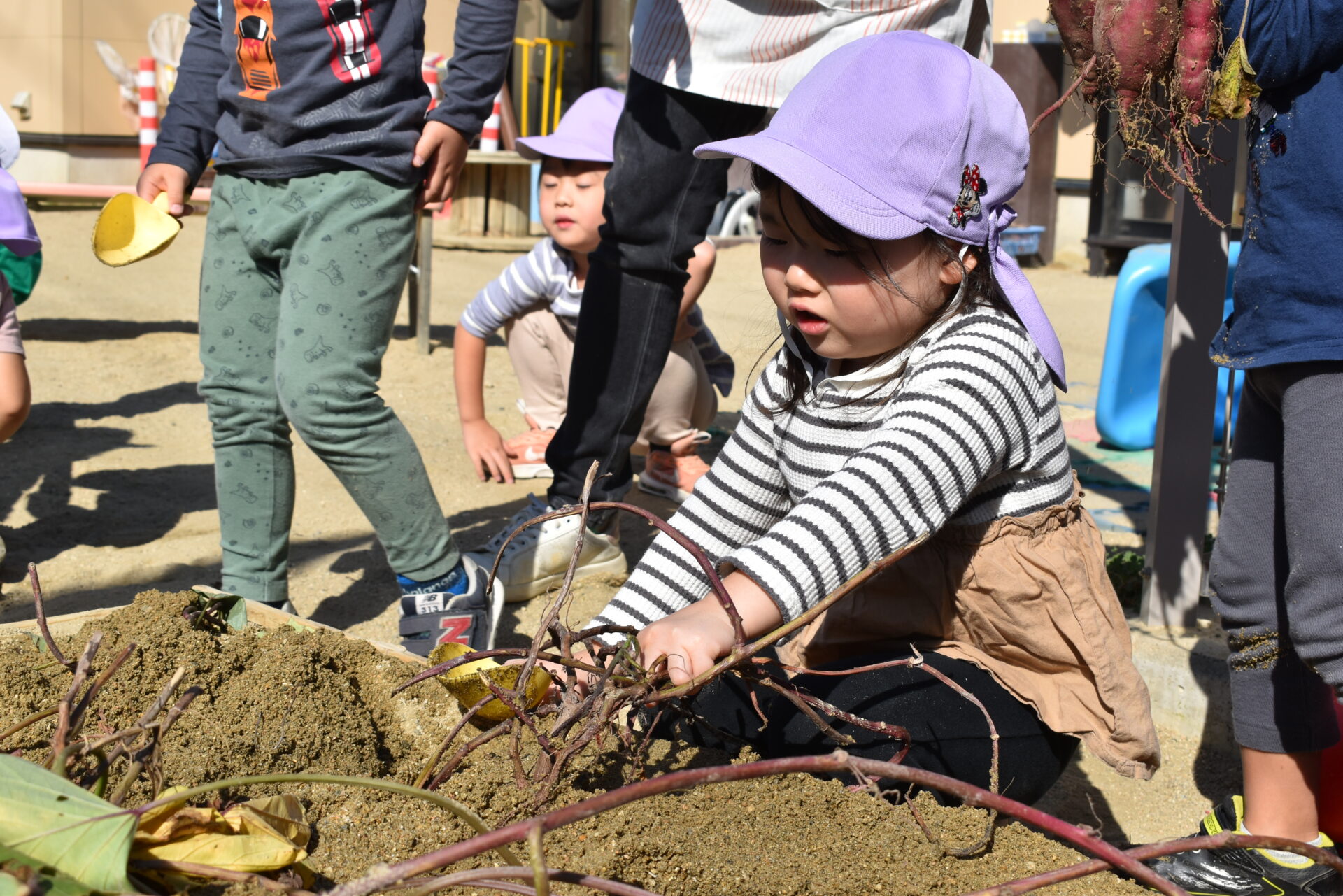 中には、奥底に埋まった芋を丁寧に掘る子もいて、
