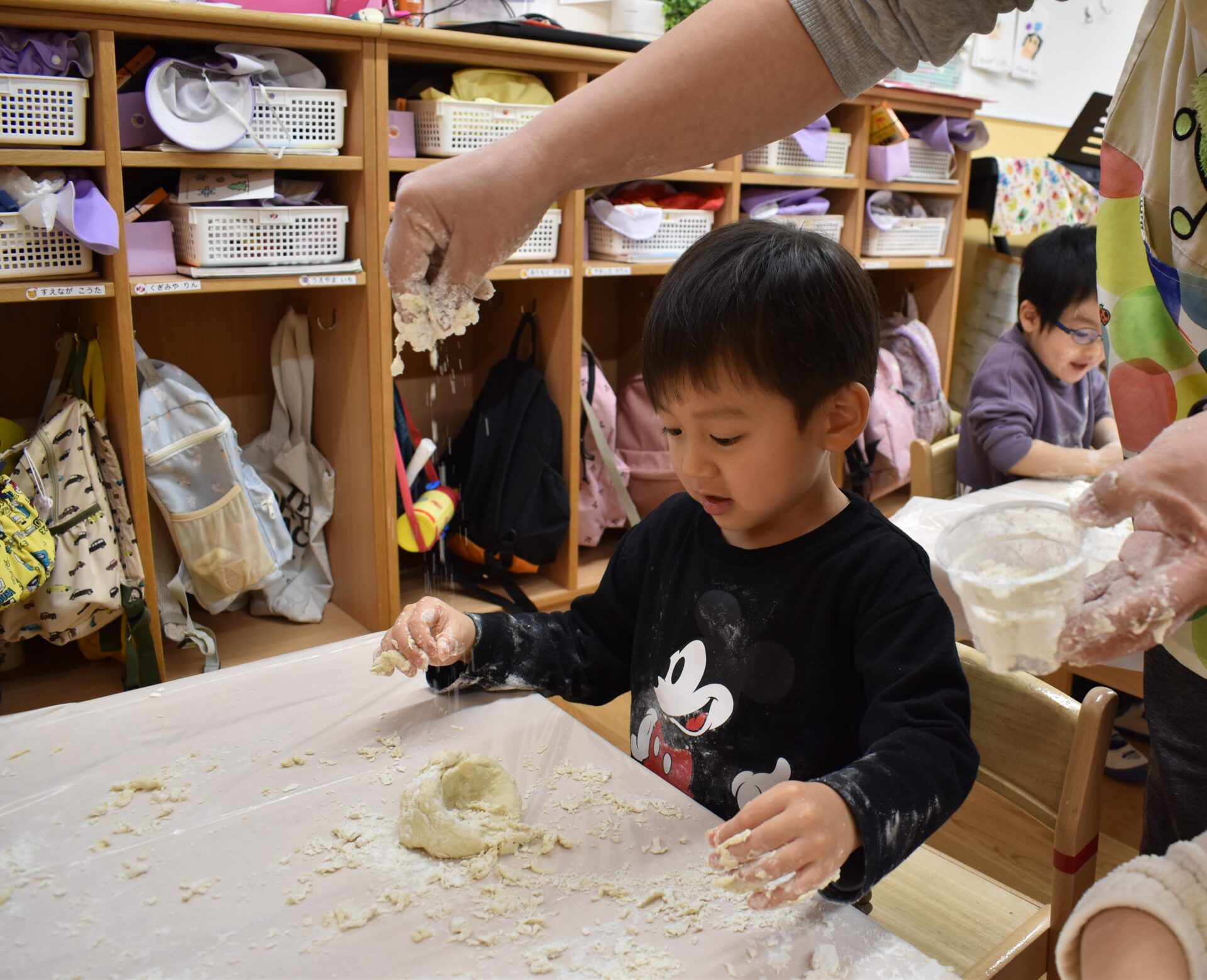 丸くて、こんなので……と作って見せると、上手に作る子もいました!