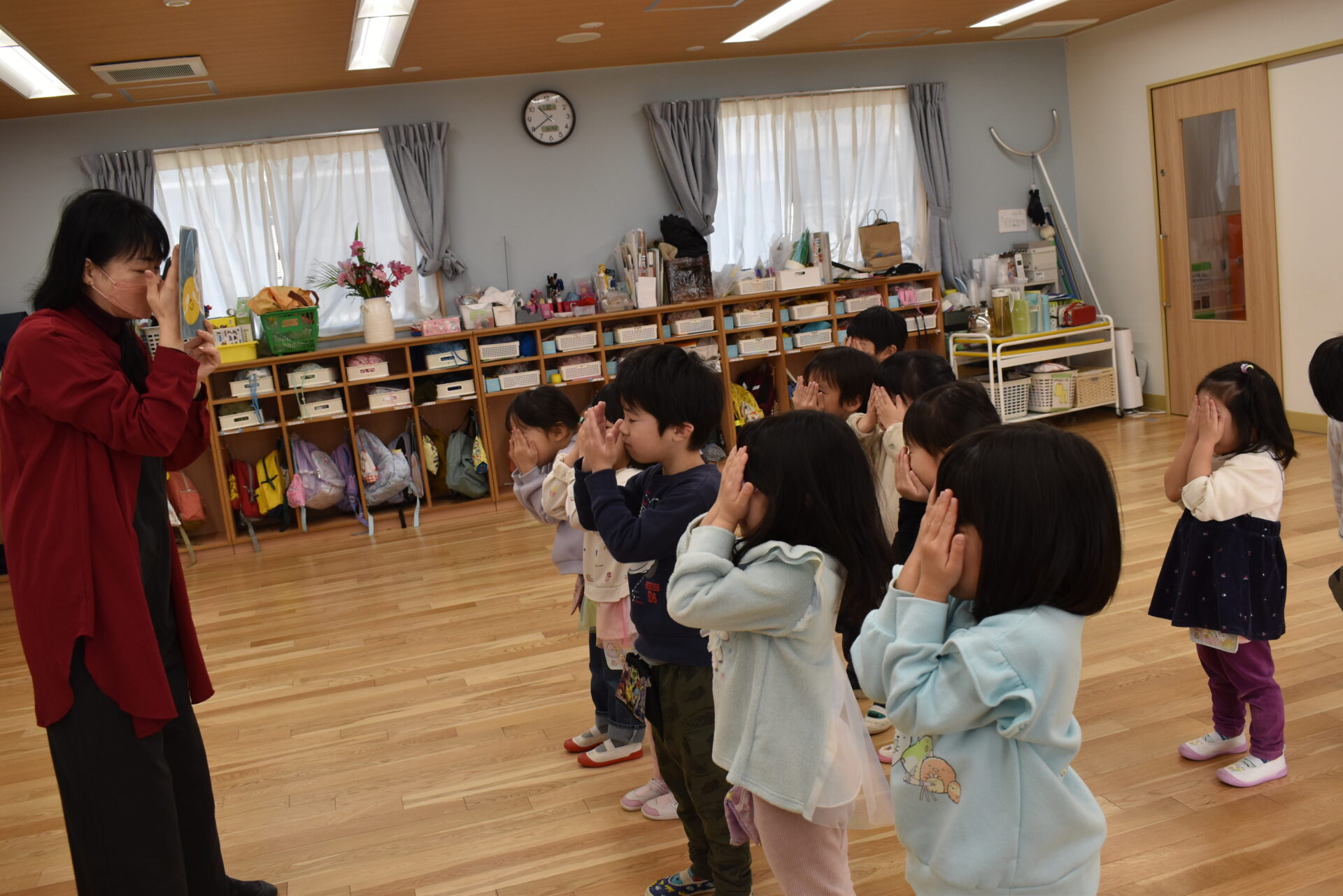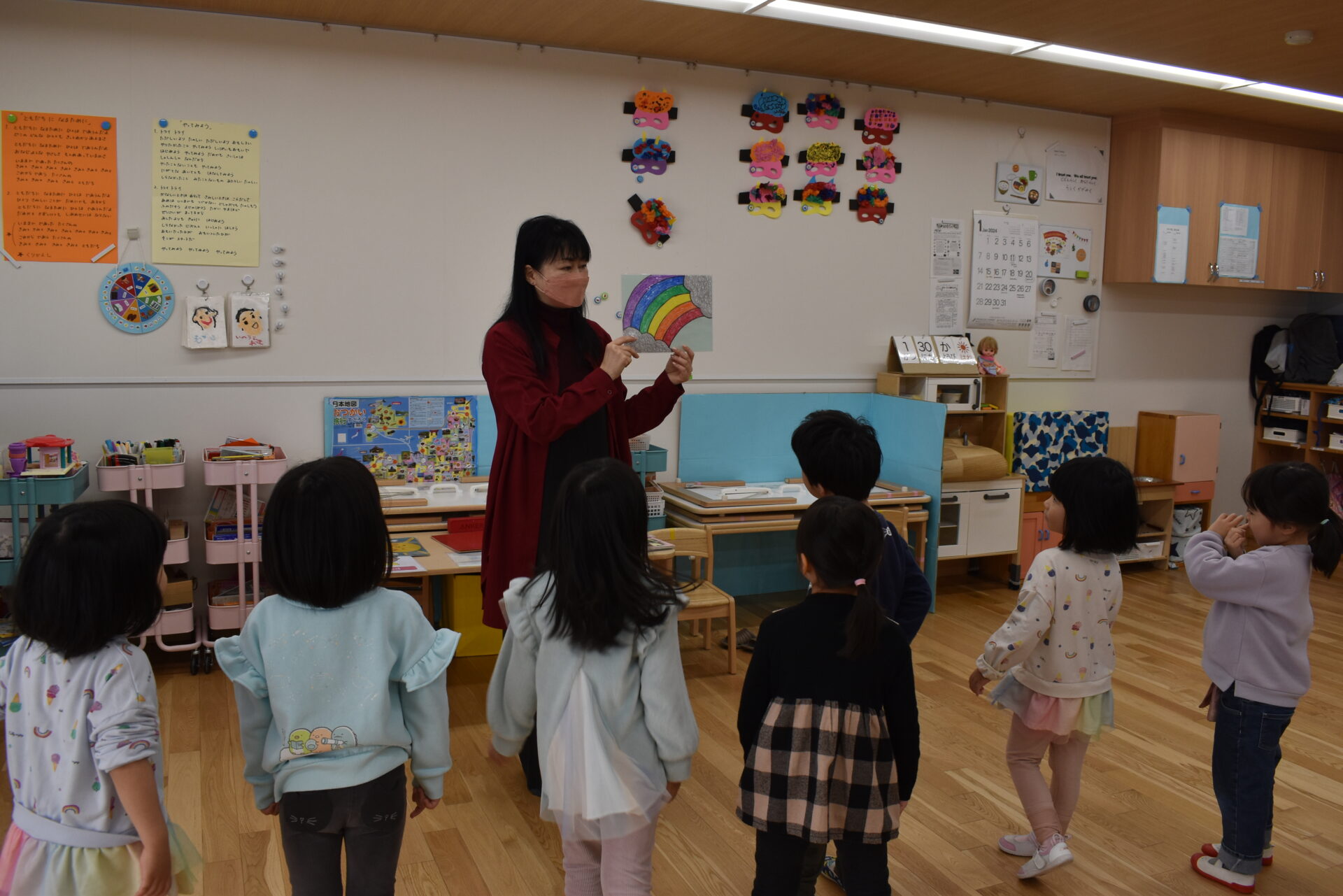 梅ノ木くじら保育園では、月に一回外部講師を招いて『英語レッスン』をしています。