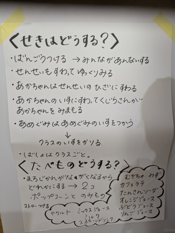 今回は、終わりの会で映画館チームで必要な物をみんなに伝える事がミッションに加わりました。