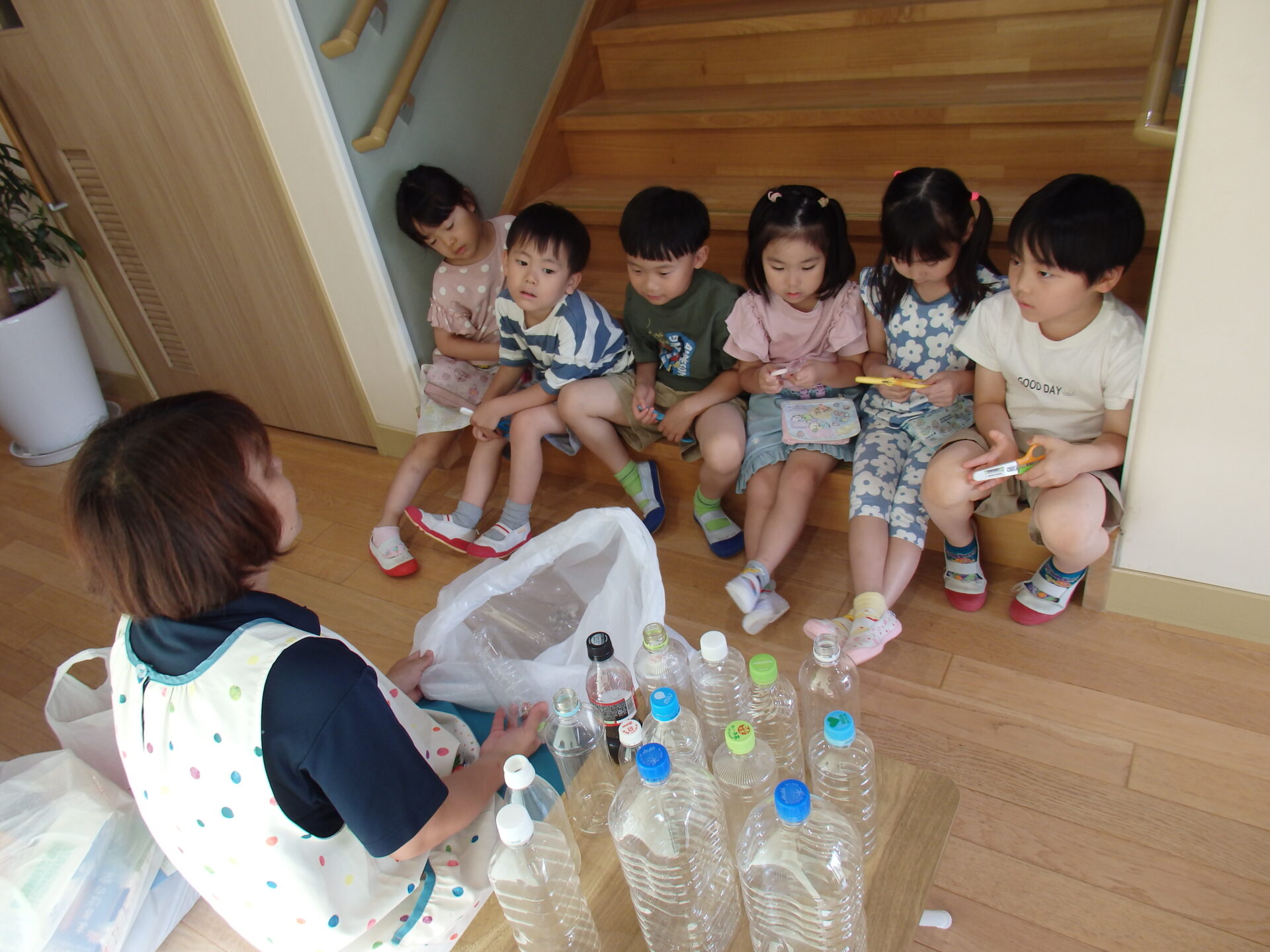 みんなに協力を求めた結果、たくさんのヤクルト容器と、ペットボトルが集まりました。