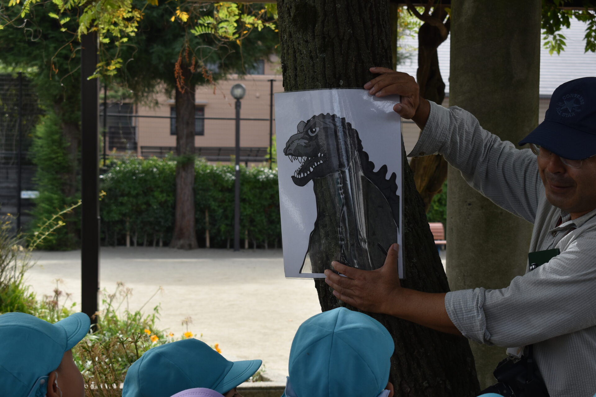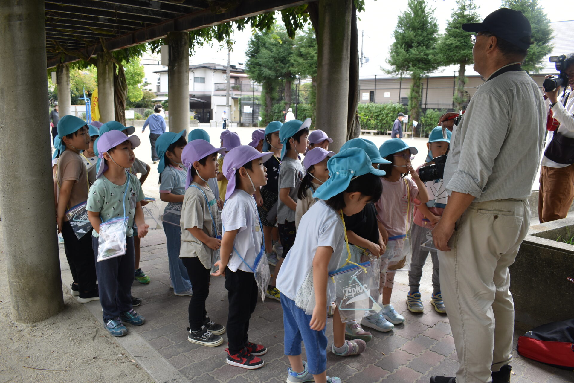 今回は、人と自然の博物館の植物博士の小舘さんが、4.5歳児対象に『エコロジー自然体験』をしてくれました。
