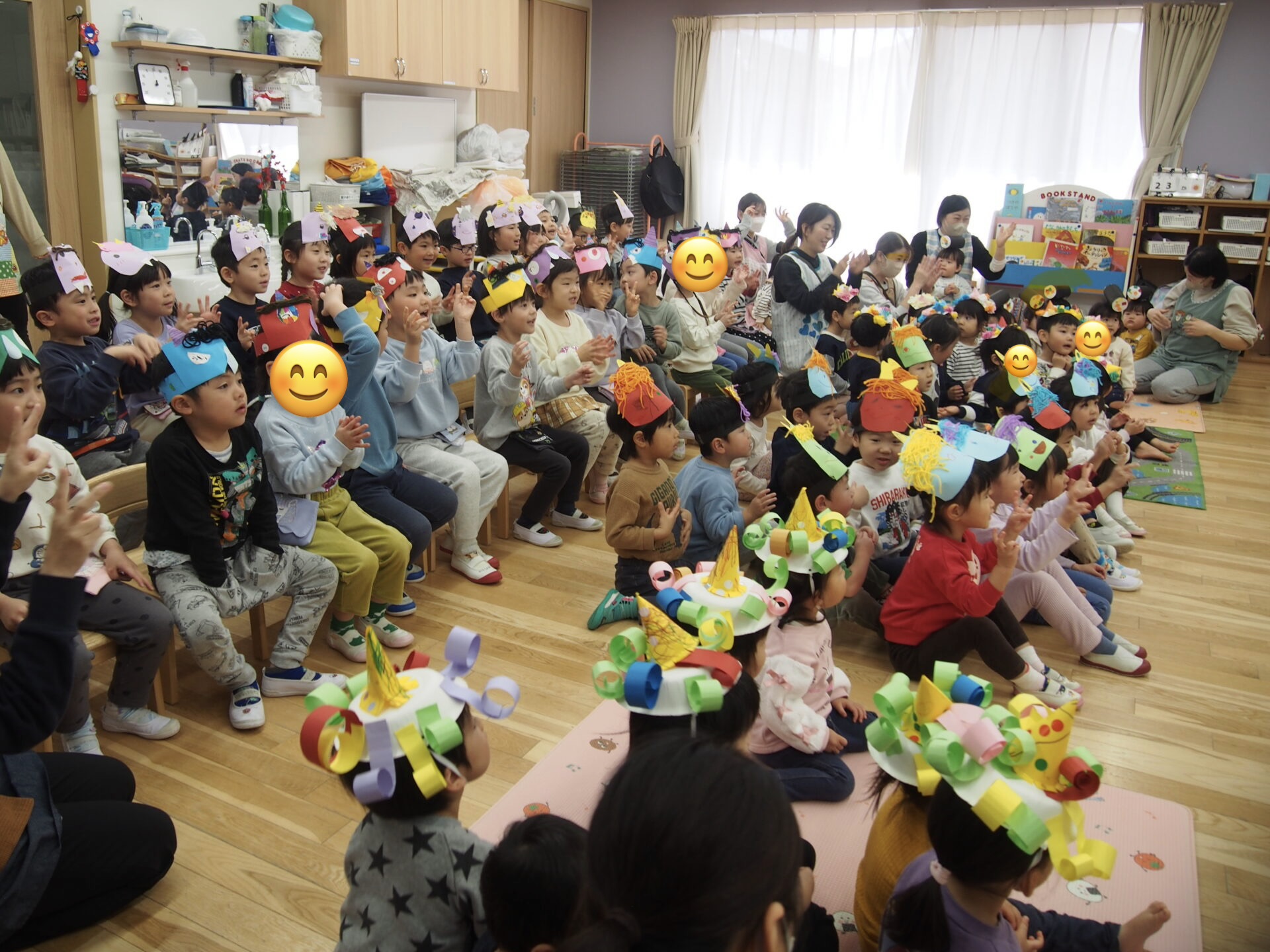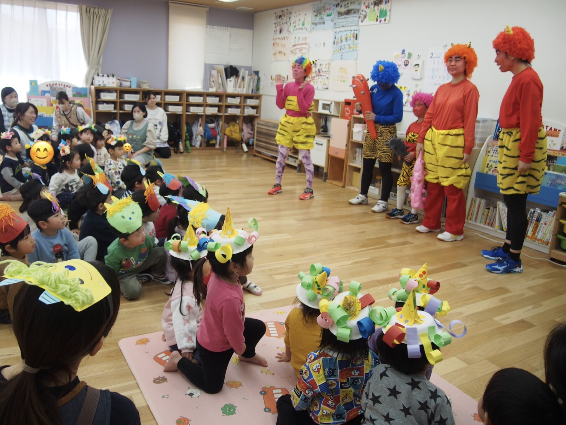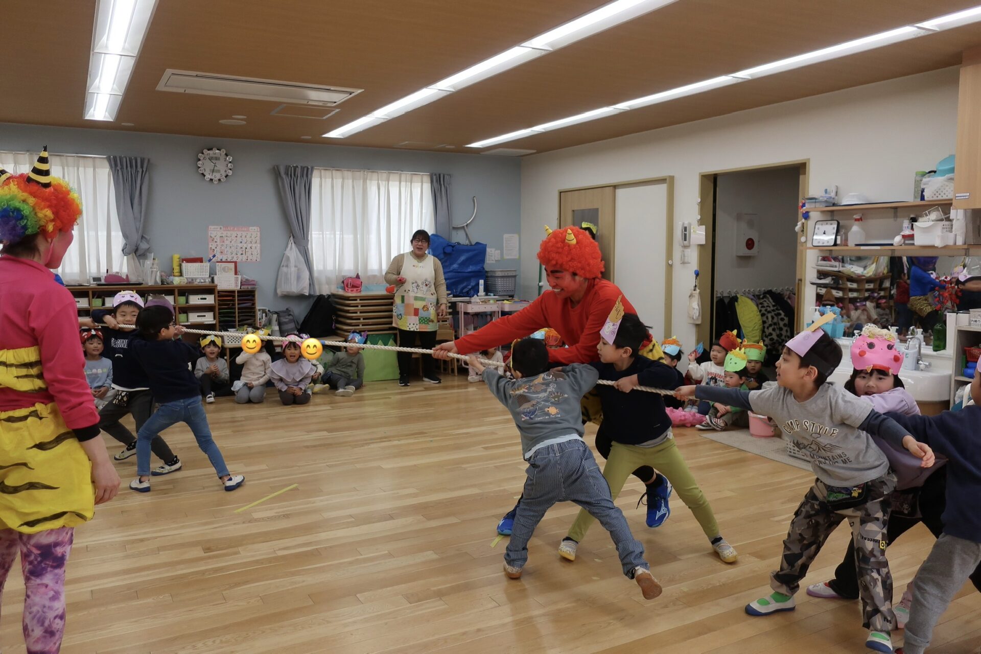 みんなで「鬼のパンツ」をスピードアップにして歌ったり楽しんでいました。