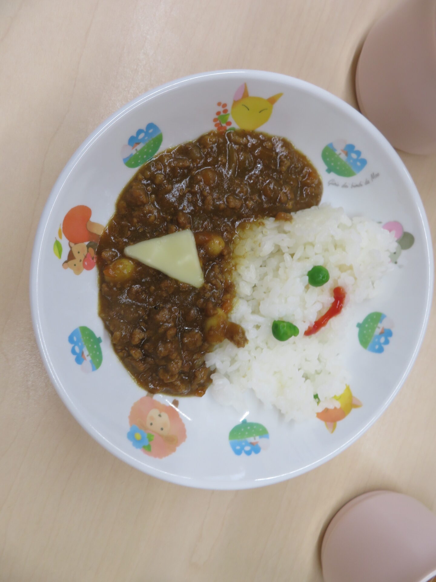 給食は、鬼さんのドライカレーでした。美味しいと言いながらみんな食べていました。