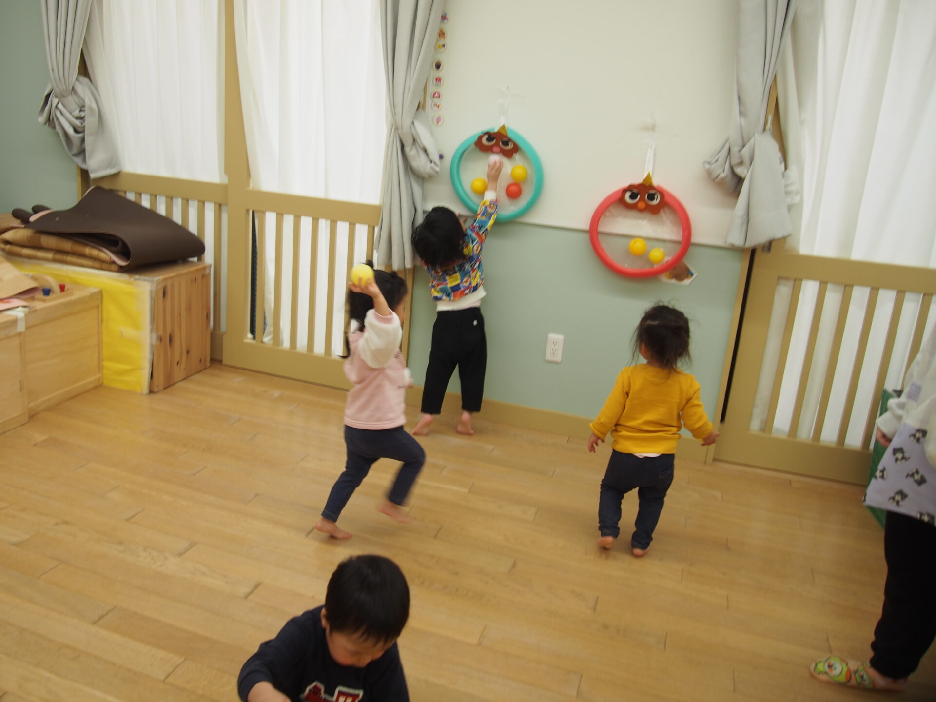 ボールを投げて貼ったり、付けにいったりと様々な遊び方で楽しんでいましたよ。