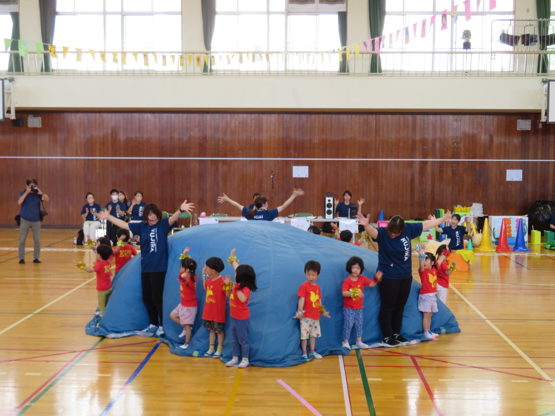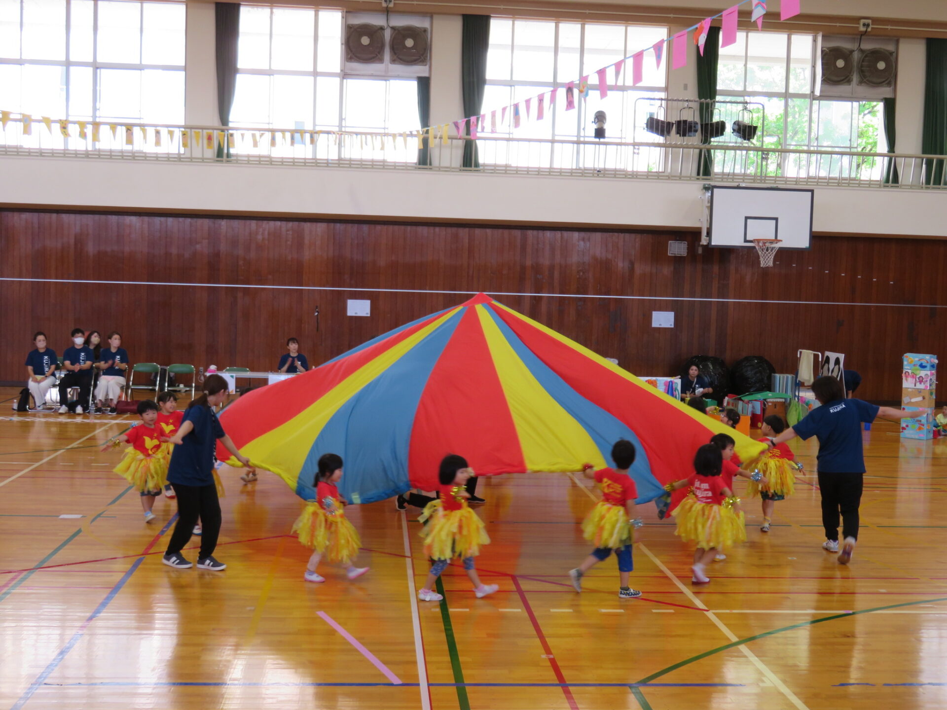 衣装チェンジやパラバルーンが途中で変わる演出では観客から歓声があがり、子ども達も最後まで笑顔で取り組むことが出来ました。