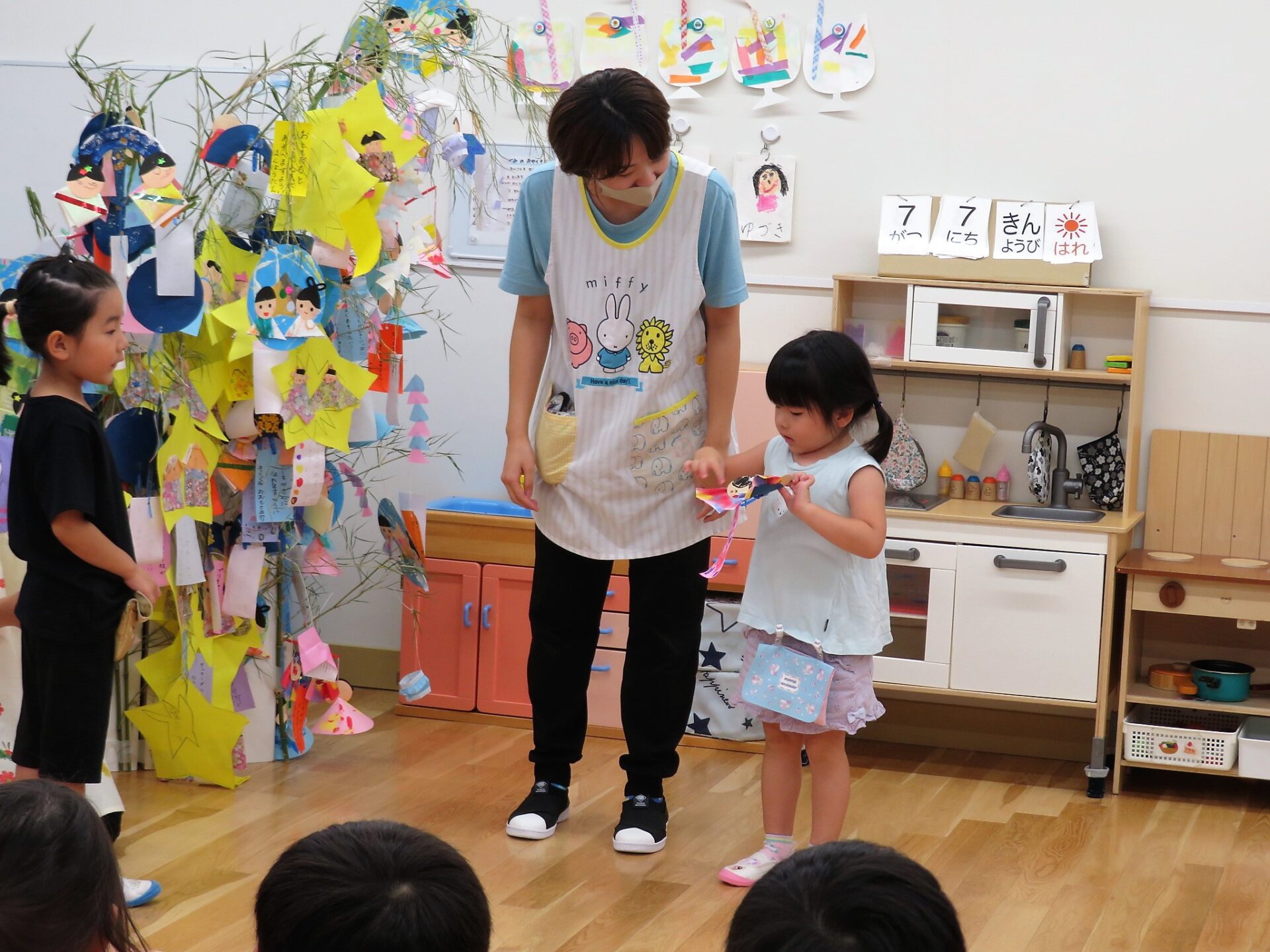 当日は朝から「今日は七夕だよ~!!」と知らせてくれたり、たなばたさまの歌を口ずさむ子がいたりと、とても楽しみな様子がうかがえました♪
