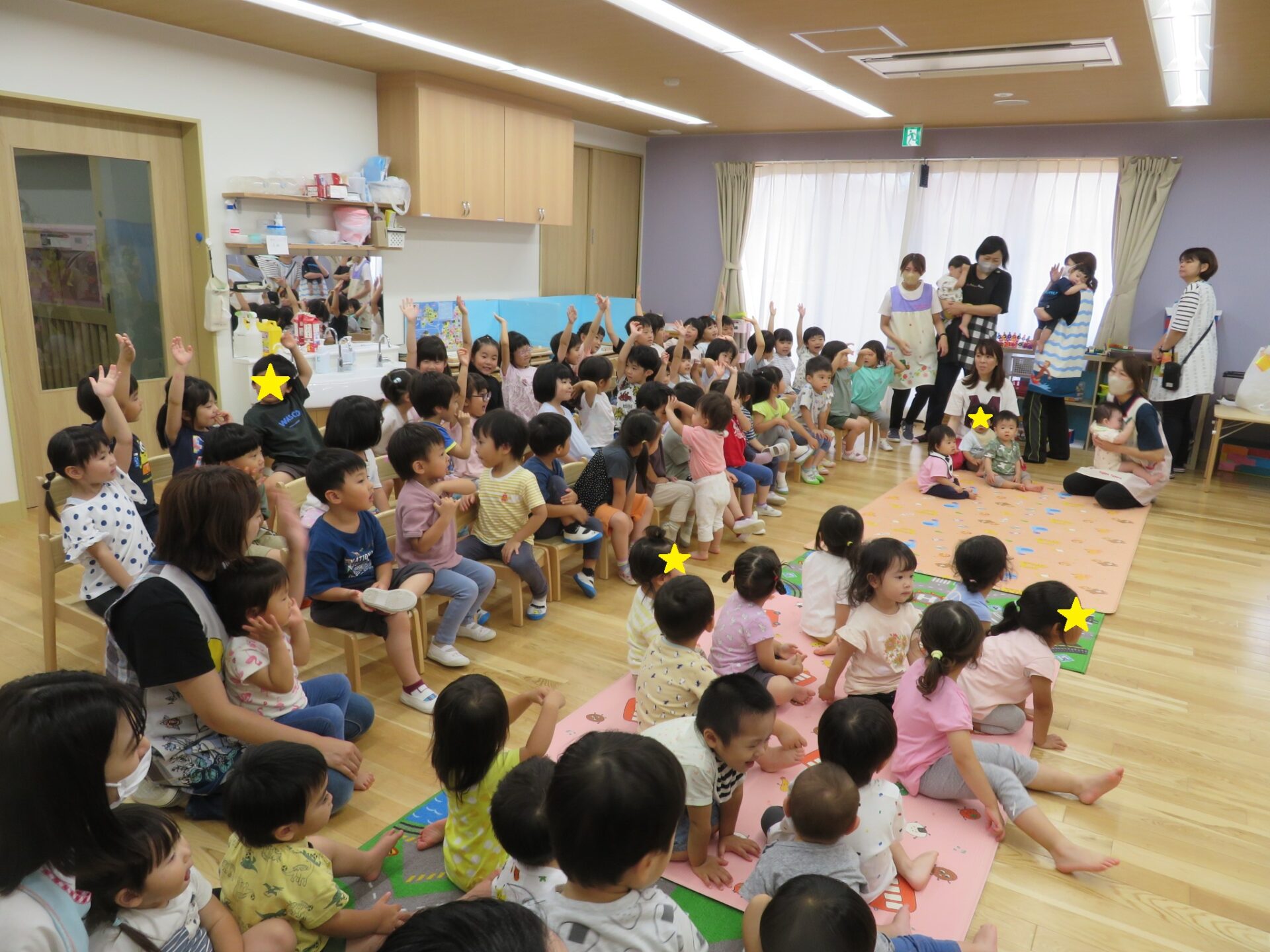 集いの雰囲気がとても楽しかったようで、うみ組の子ども達もクイズなど難しくて参加できずともこの表情です♡