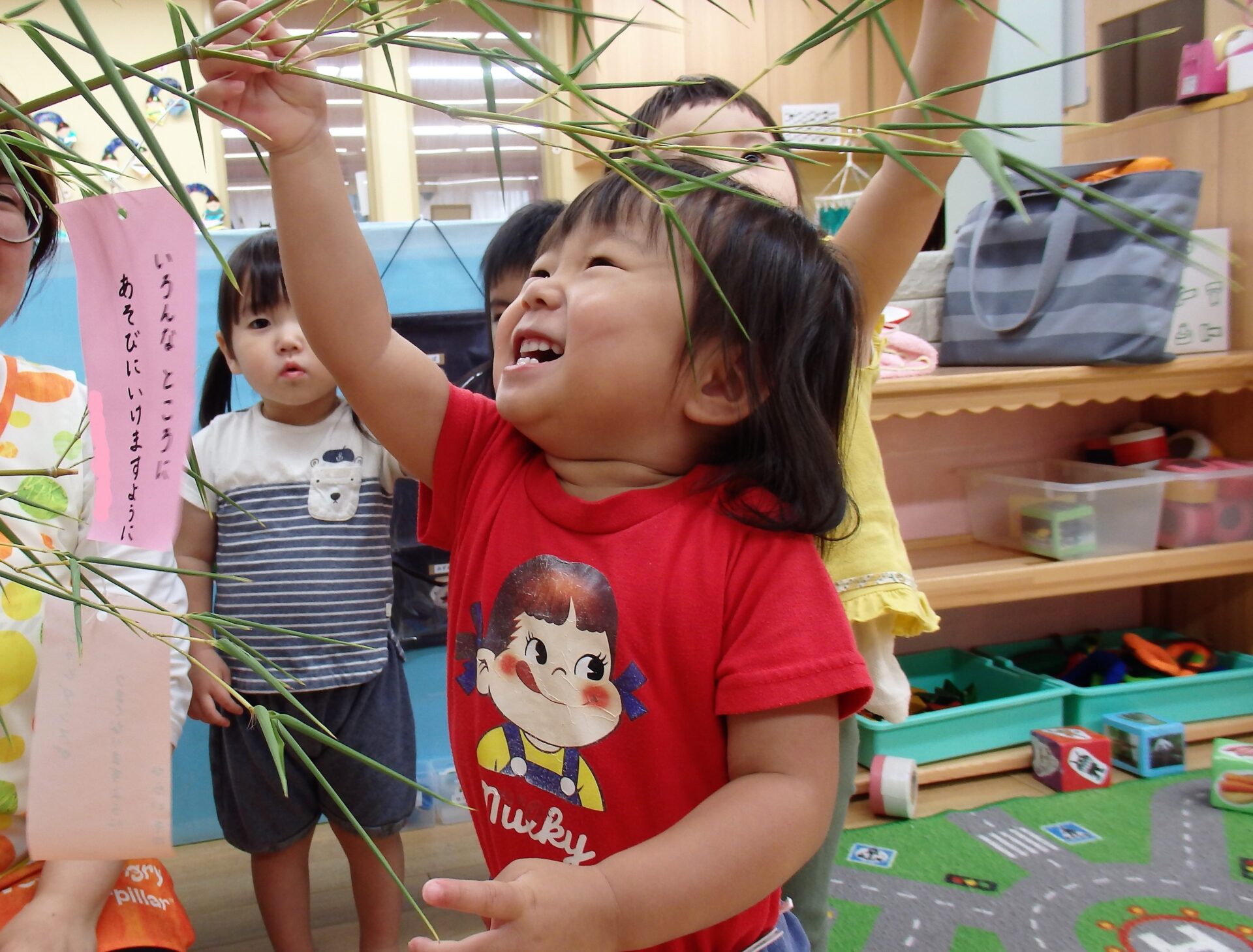 幼児クラスも乳児クラスも、自分たちで作った飾りや短冊を自分で好きな場所に飾りました♬