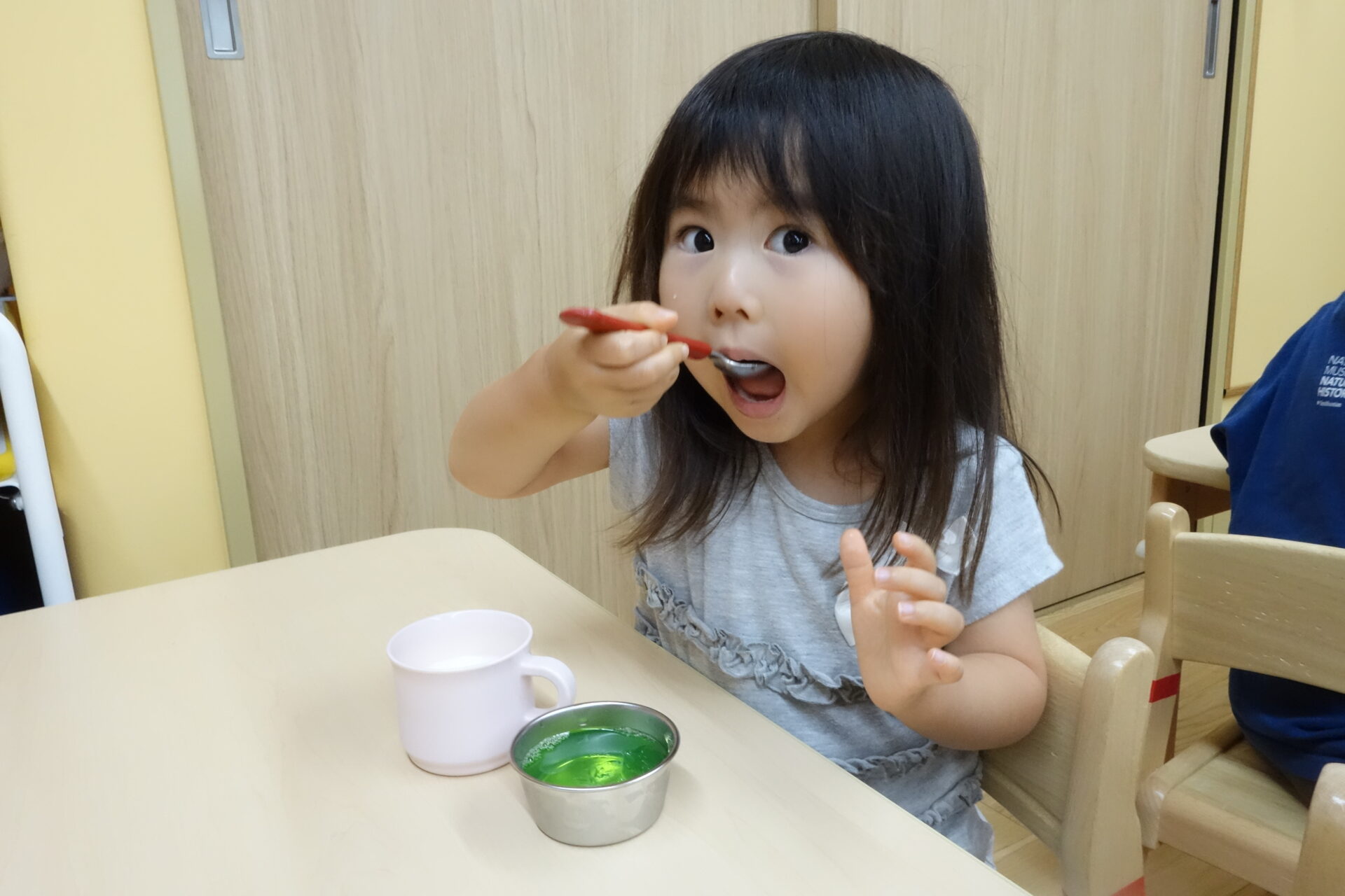 自分だけのゼリーができあがり、おやつで出てくると大喜びで食べていました♡
