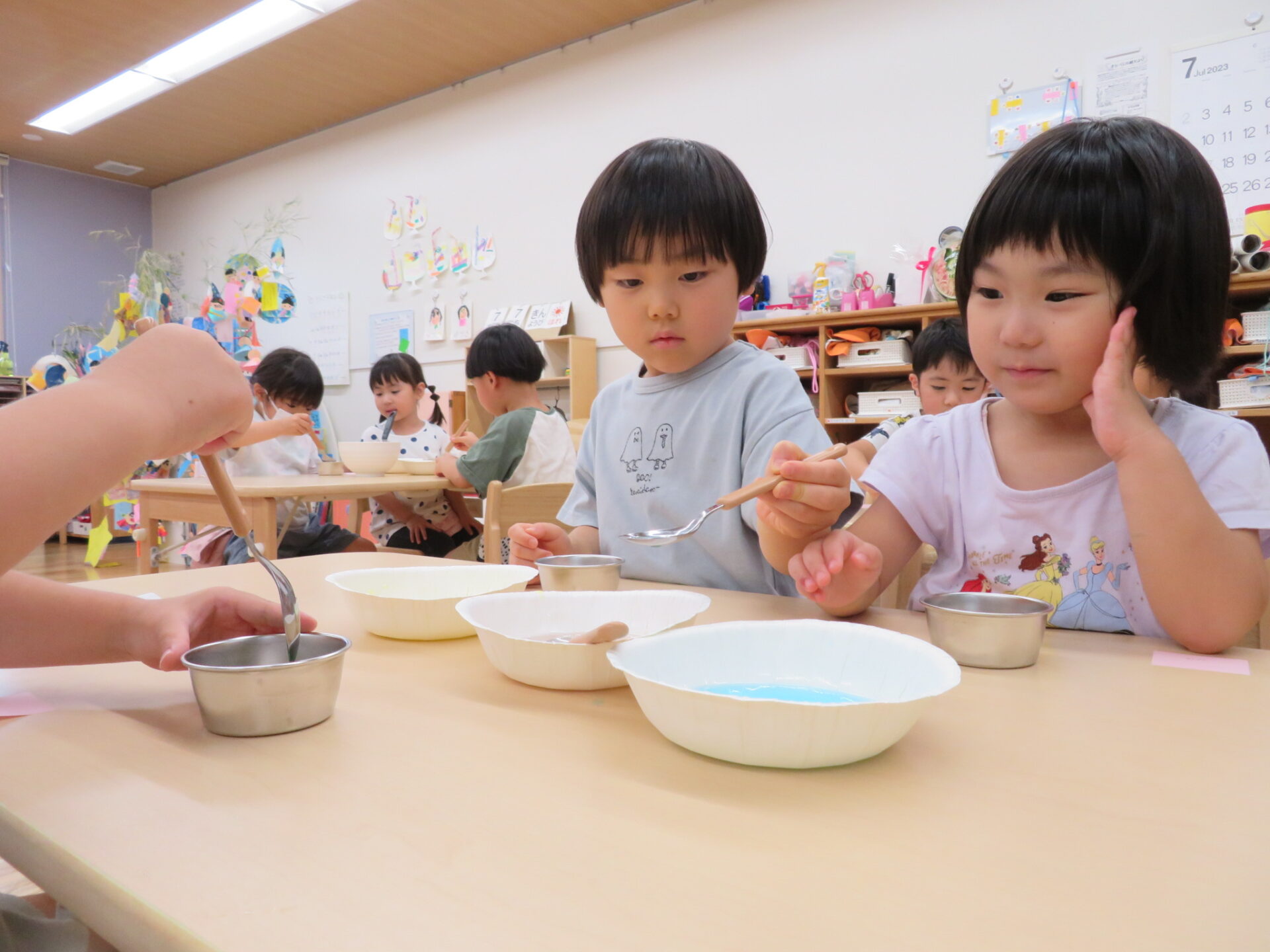 説明を聞いたあとは、いざ「七夕ゼリー」作りのスタートです!!