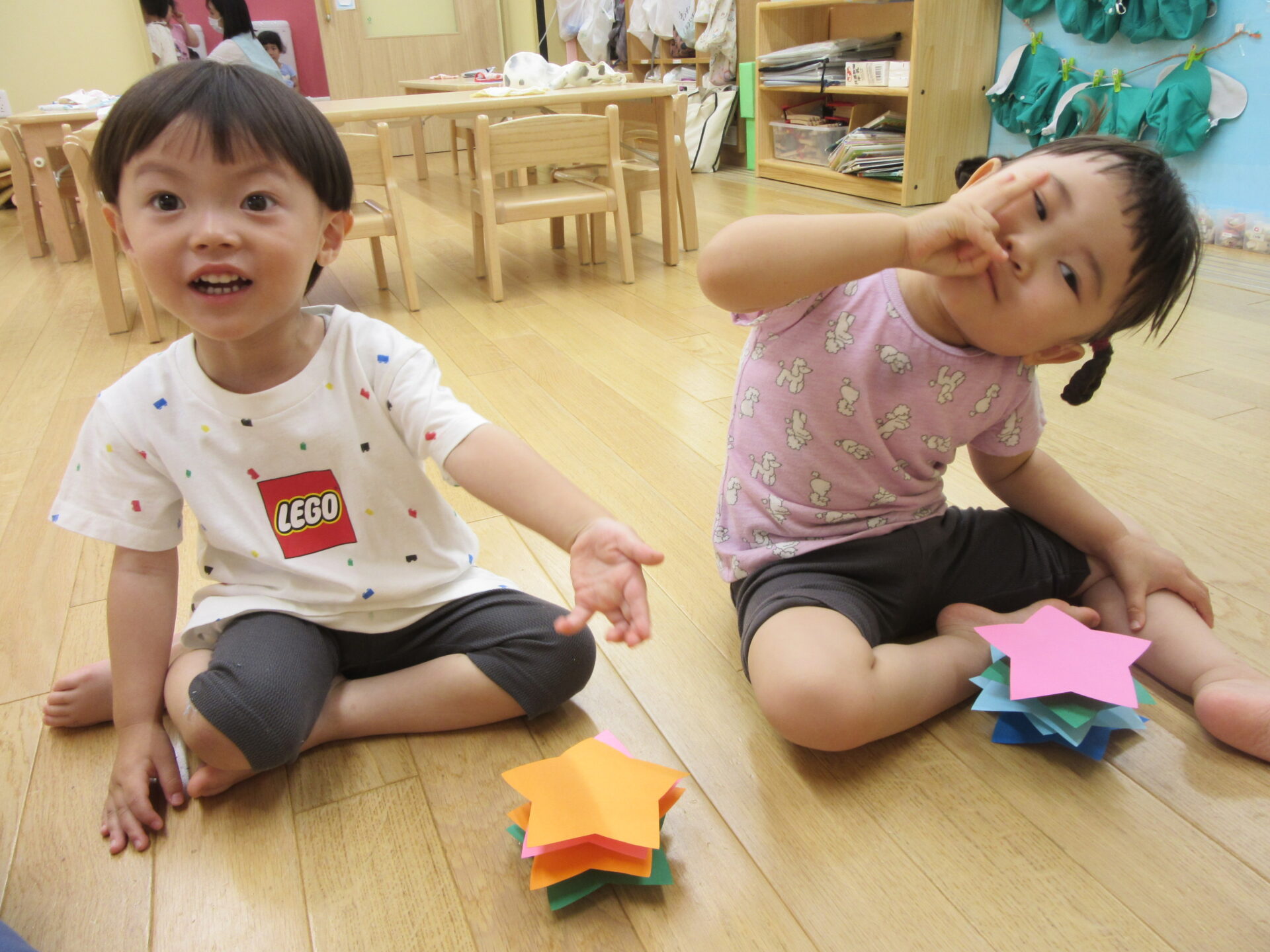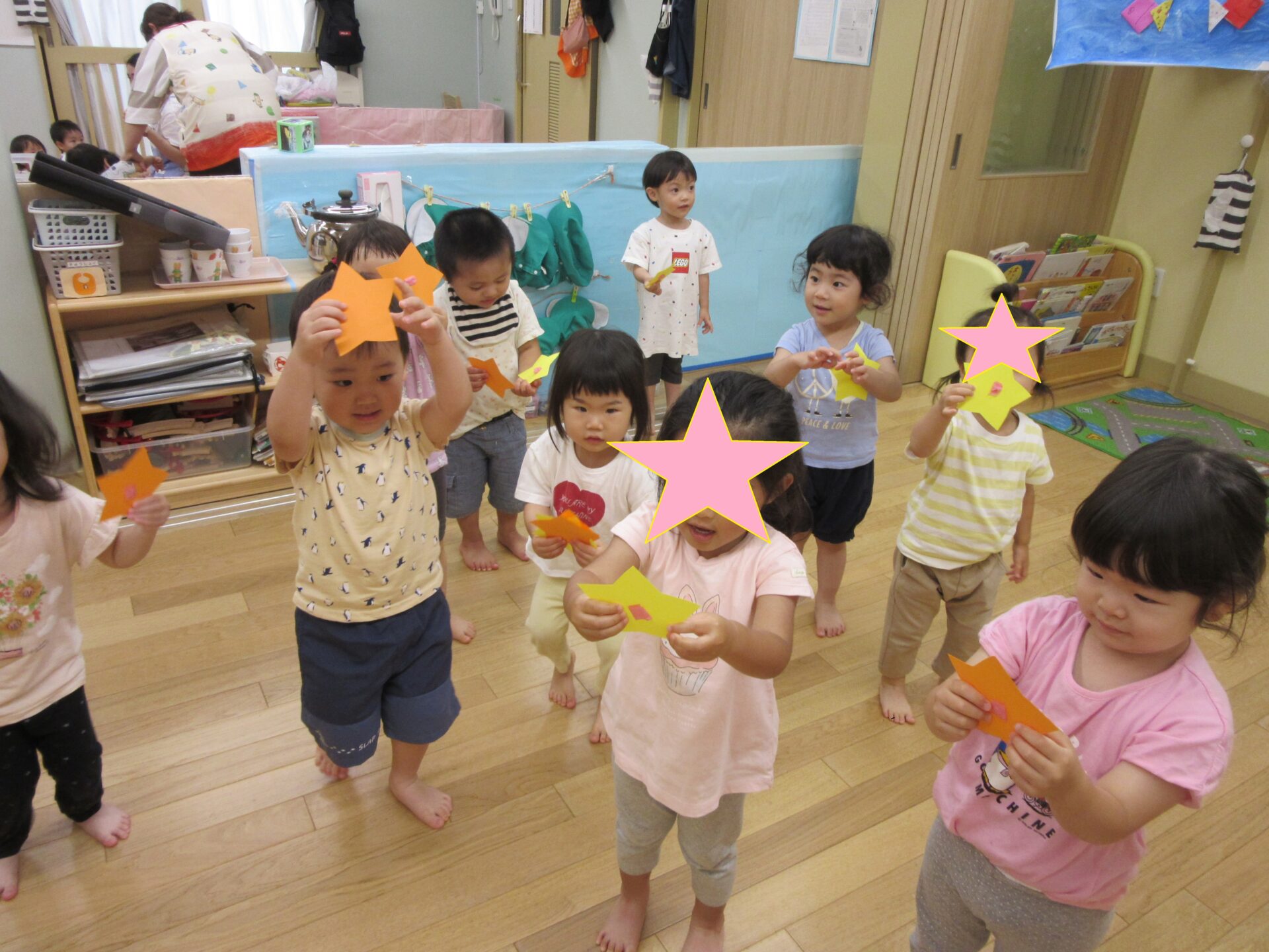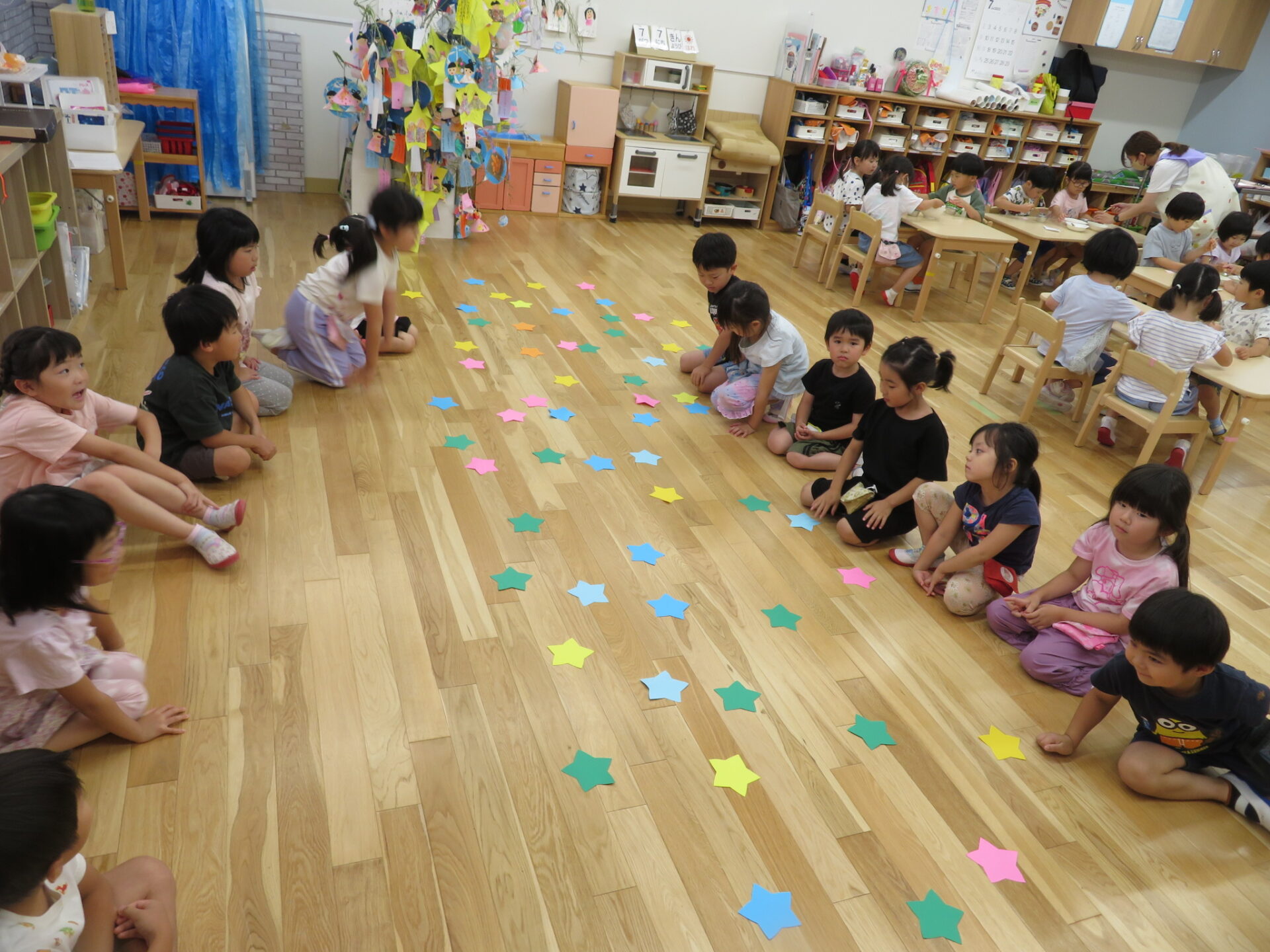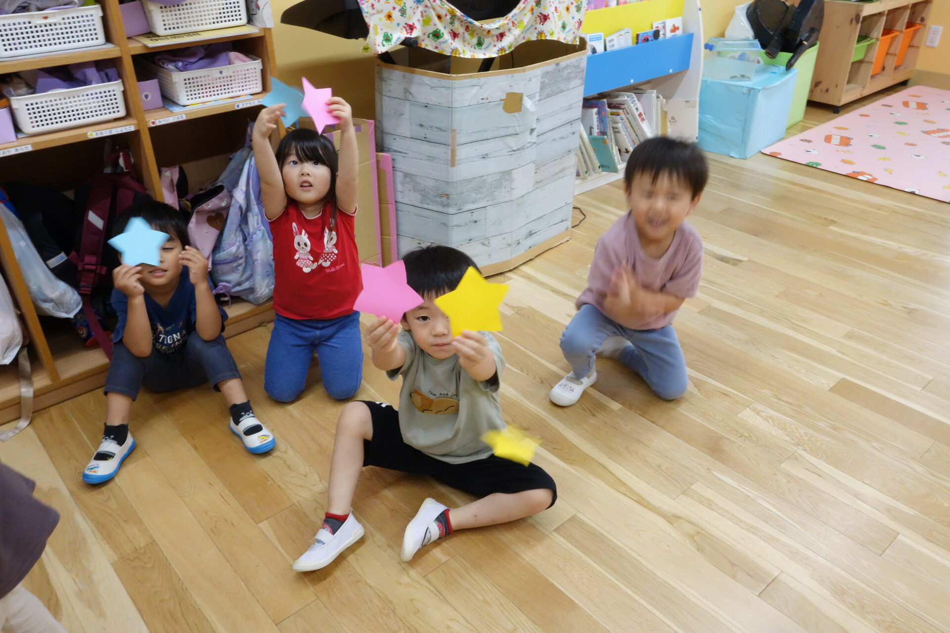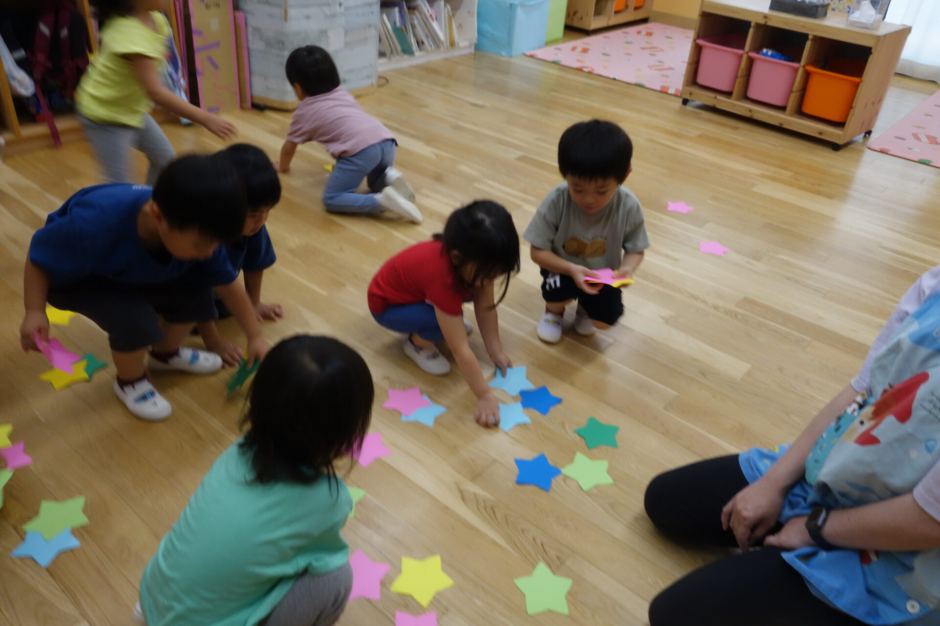 だいち組とあめ組は、星探しゲームと星積みゲーム!