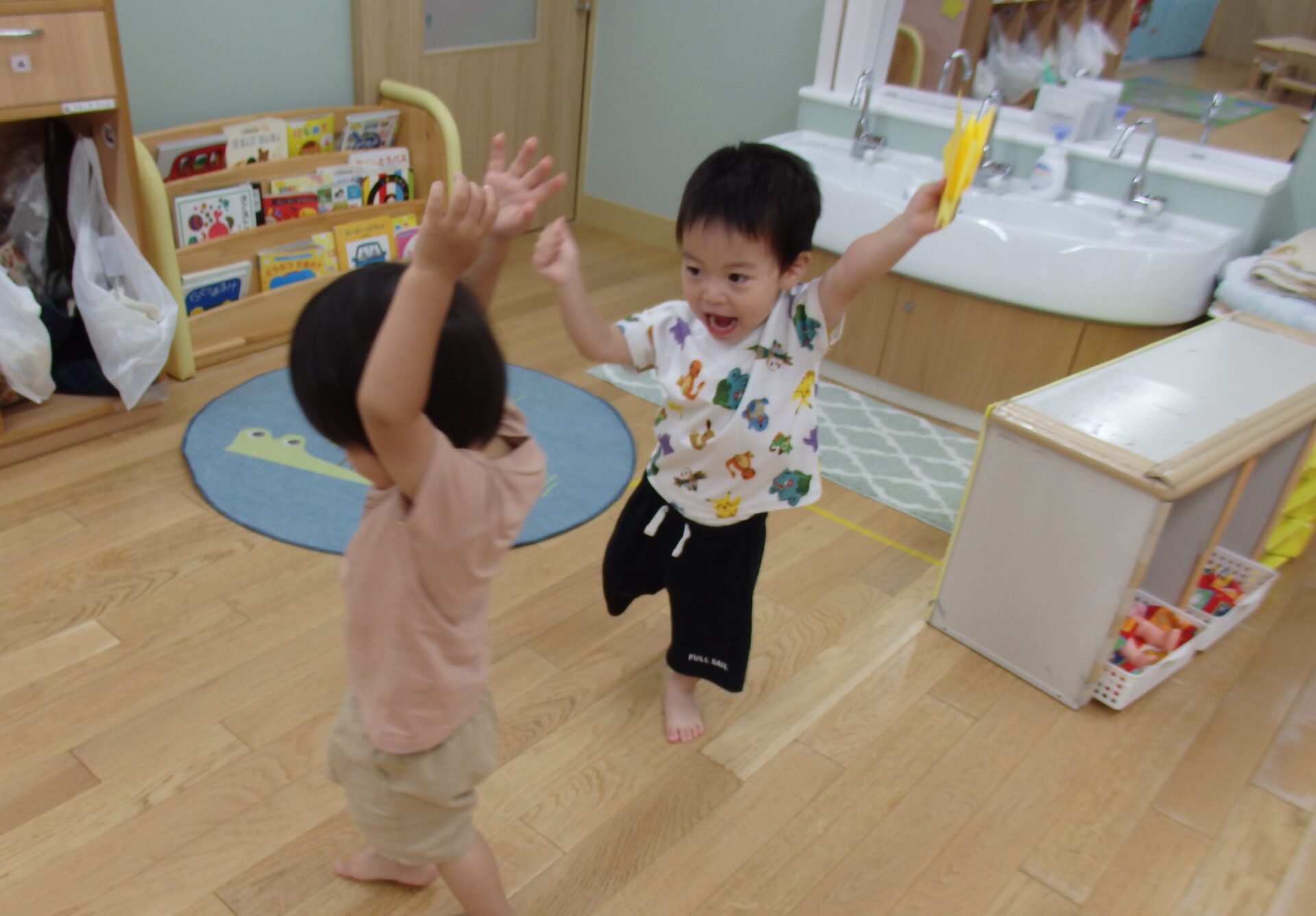 幼児クラスのゲームの様子を写真で撮ろうとすると、必ずぶれてしまうほど白熱する子ども達です☻