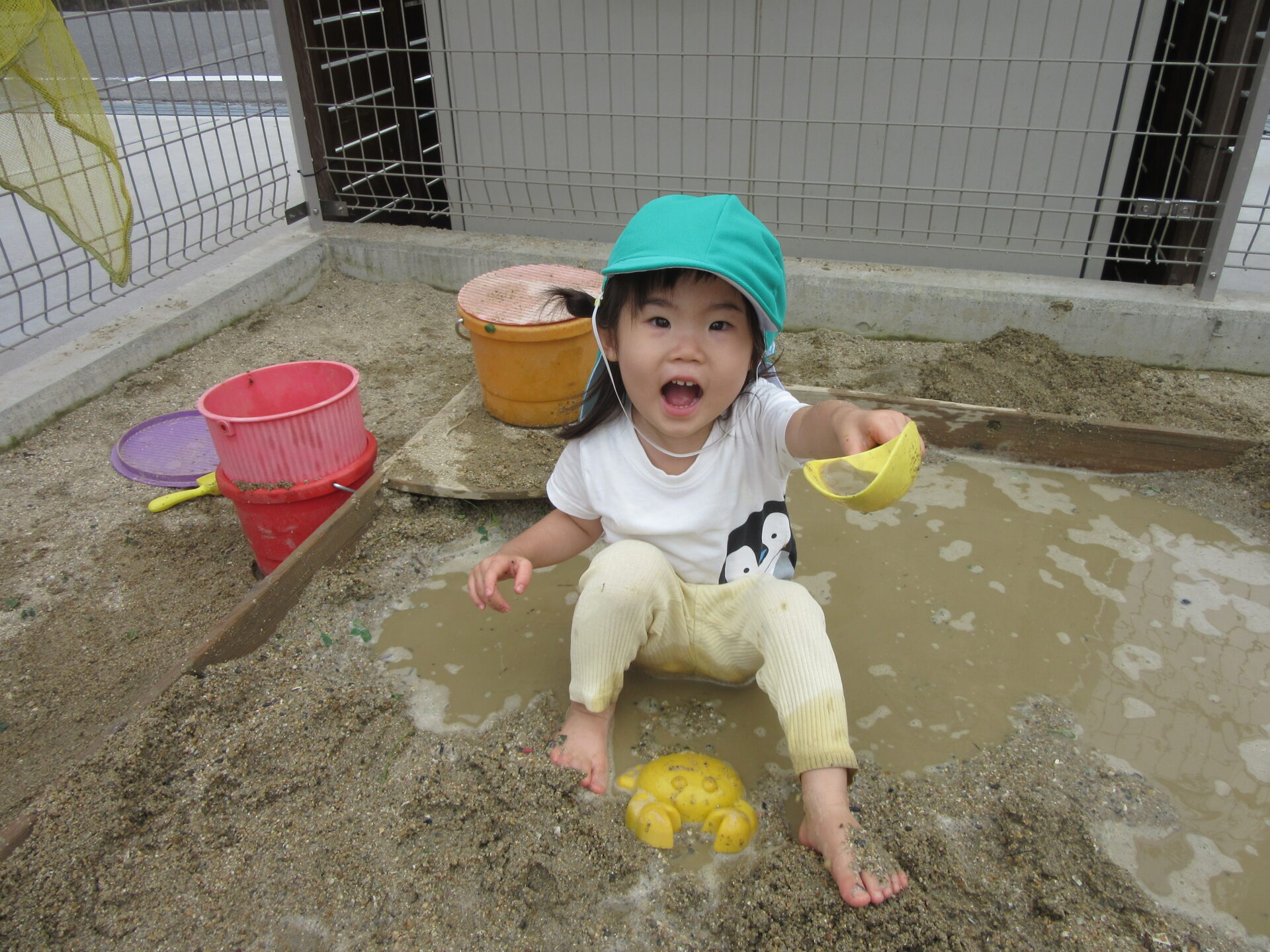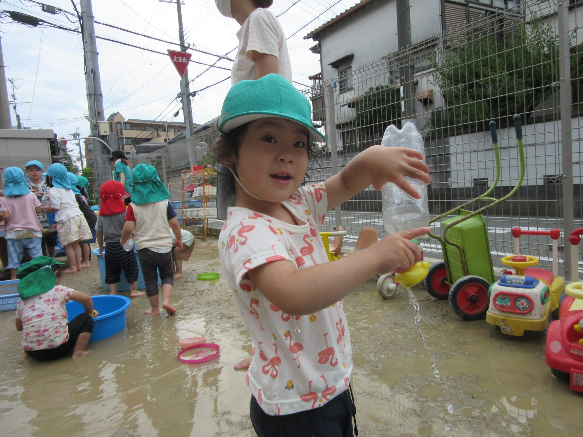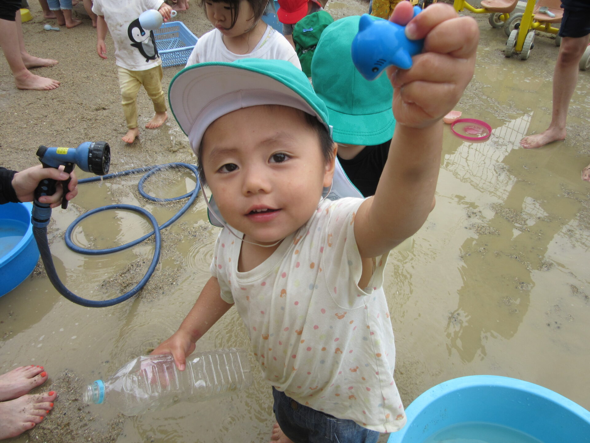 もう体や顔に水がかかってもへっちゃらの子も多く、たくさんの水に触れて遊びました。
