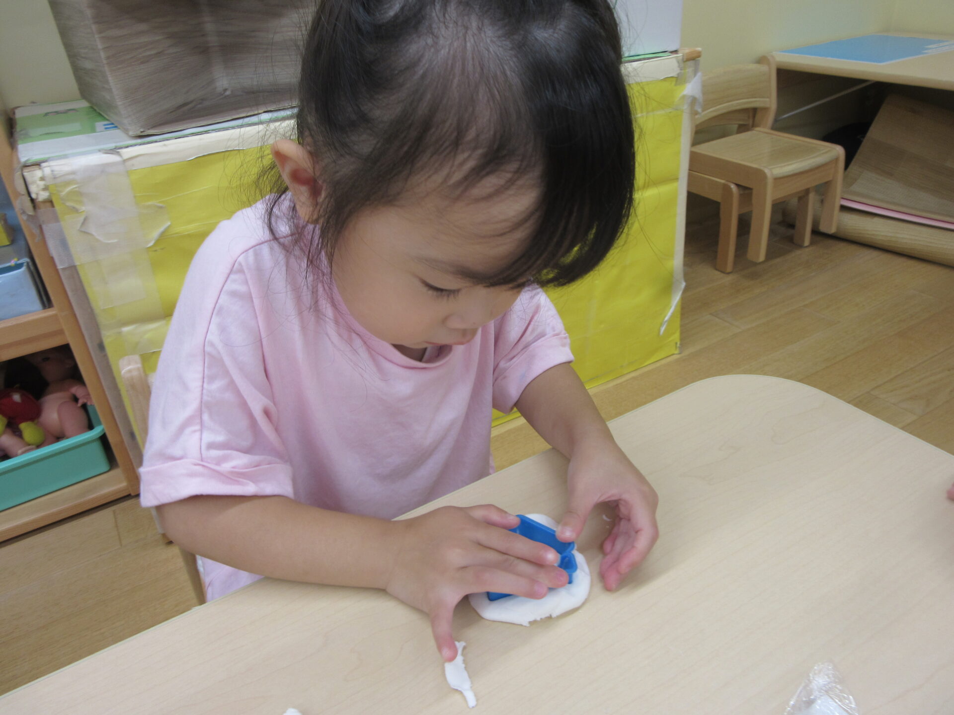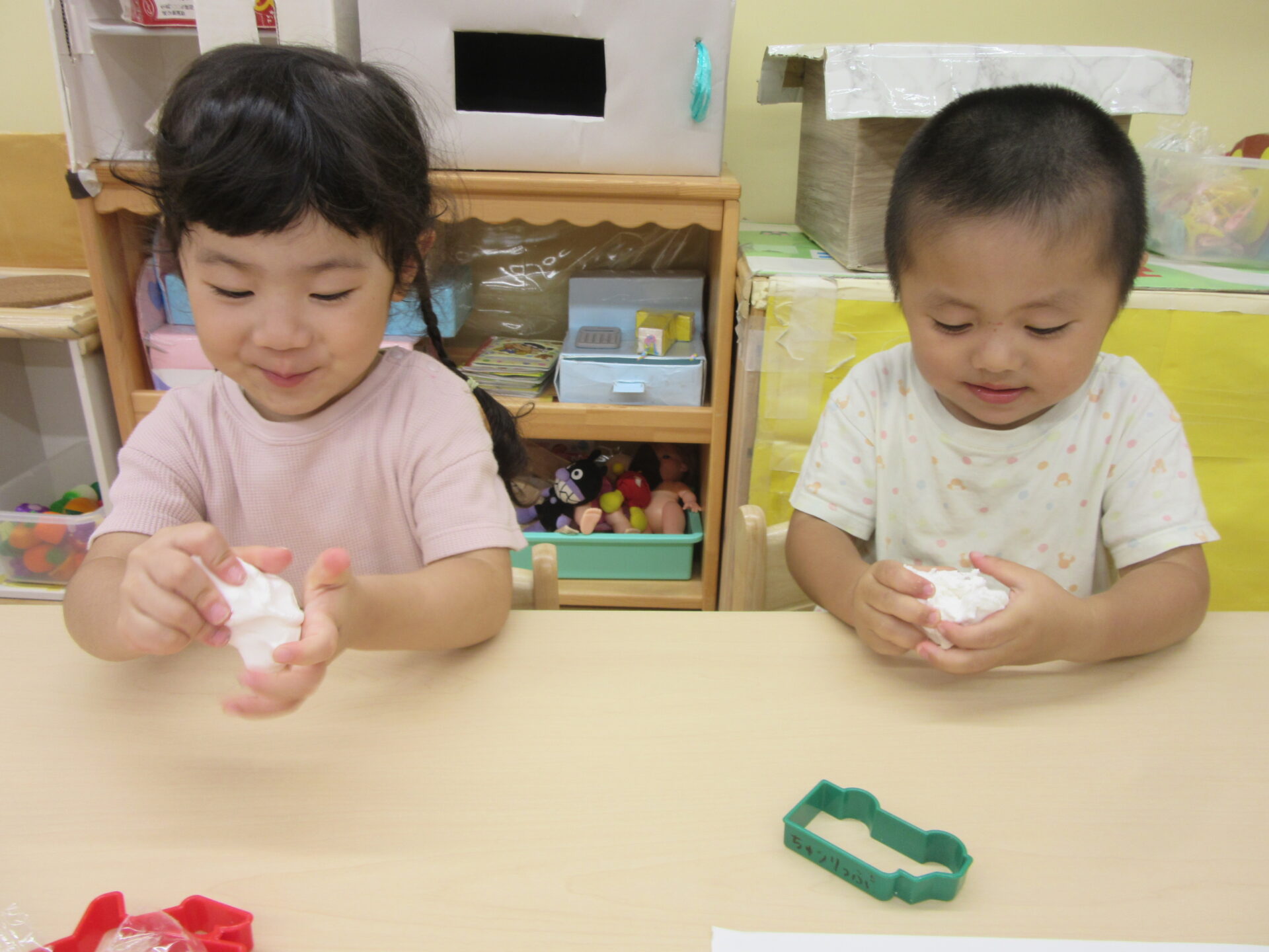 型抜きを出すと「きょうはどれにしようかな~」「うさぎがいいな~○○ちゃんはどれする?」と話しながら作り始めていました。
