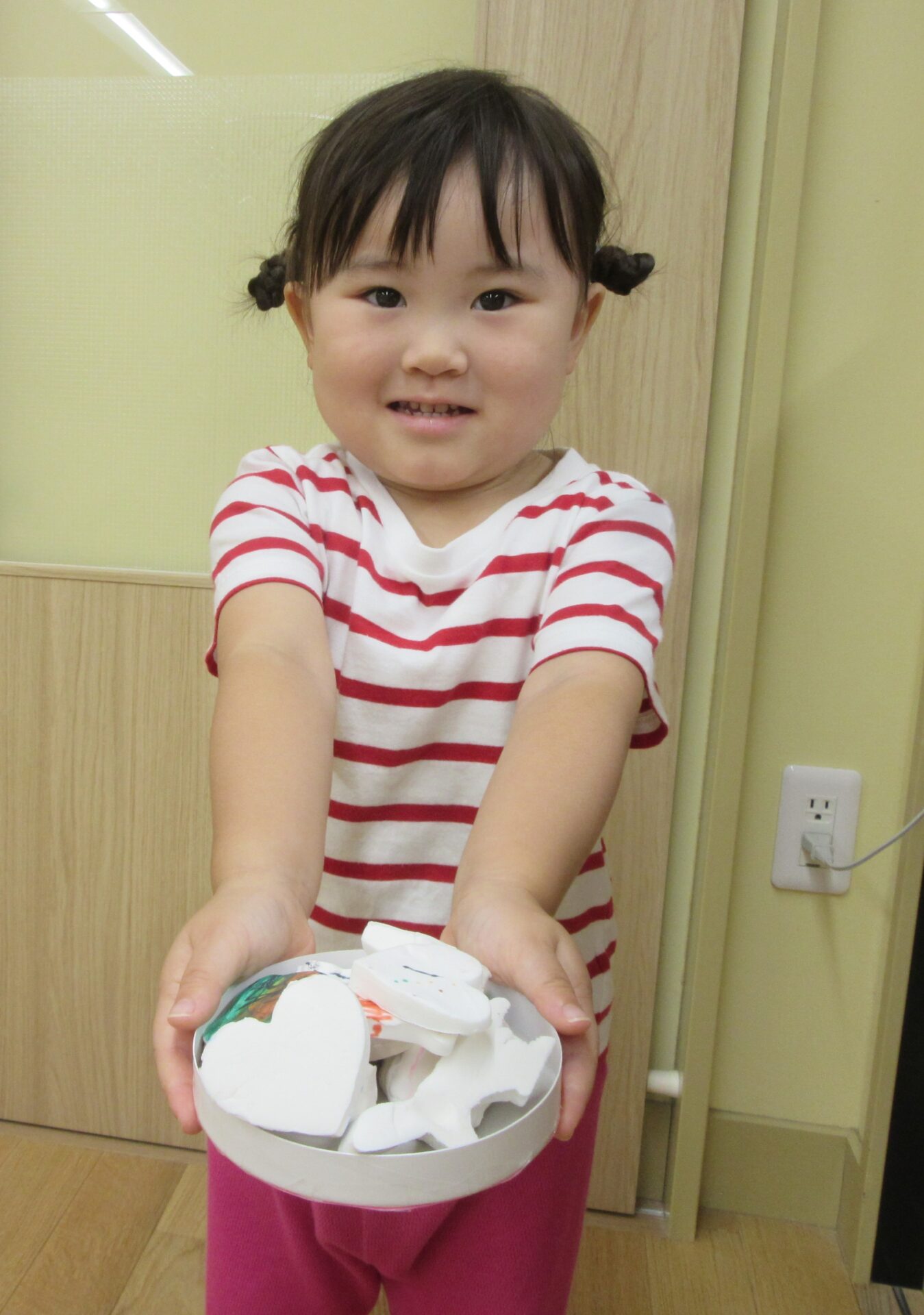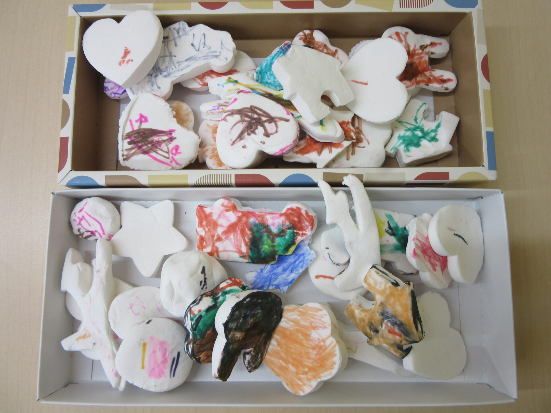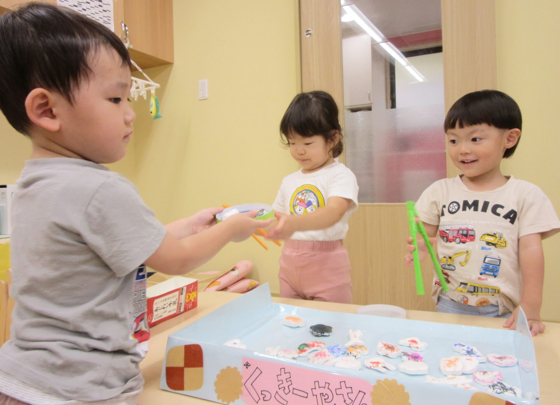 紙粘土クッキーが完成し、クッキー屋さんをして遊ぶのを楽しみにしていた子ども達。
