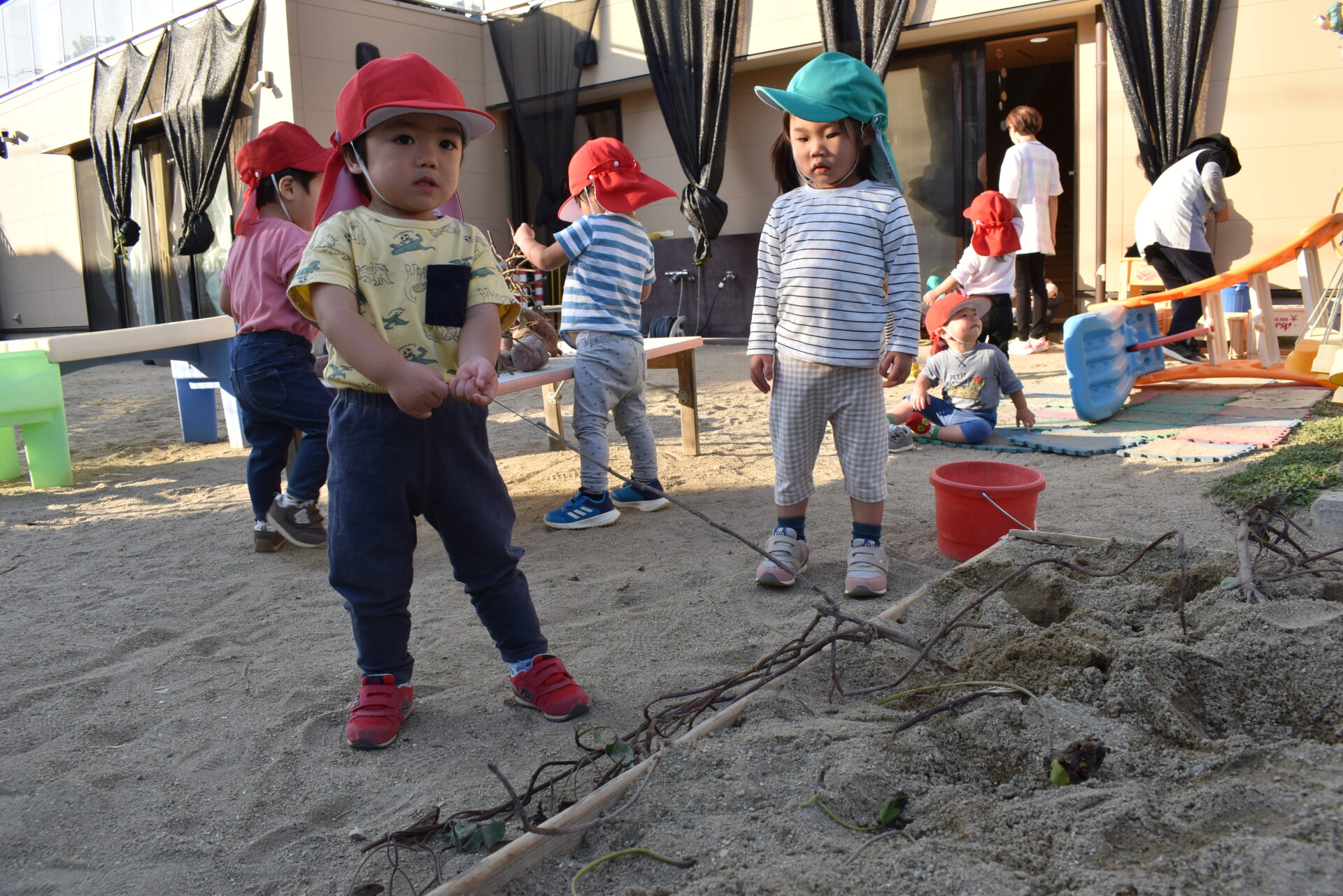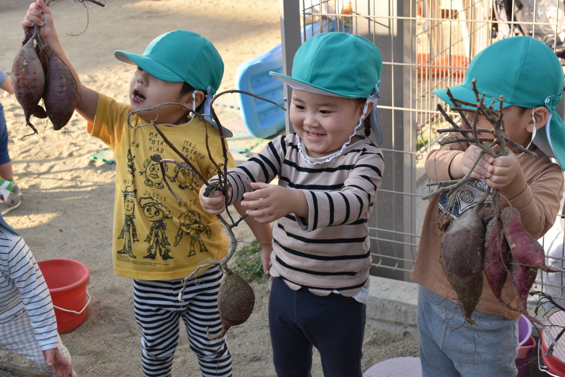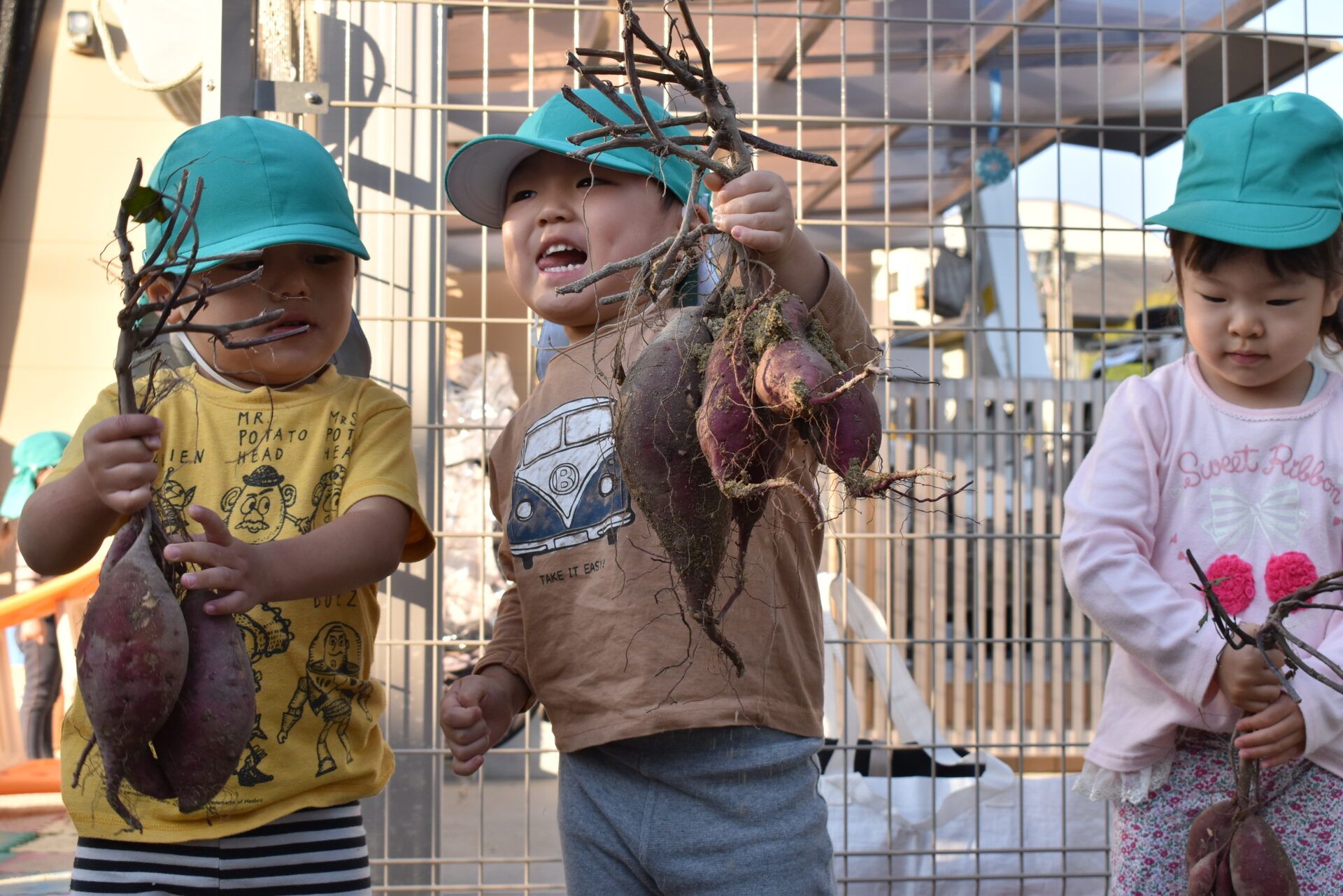 4.5歳児の親子芋ほりのお土産の芋を使って、3歳児の芋ほりごっこの次は1.2歳児クラスの番です!