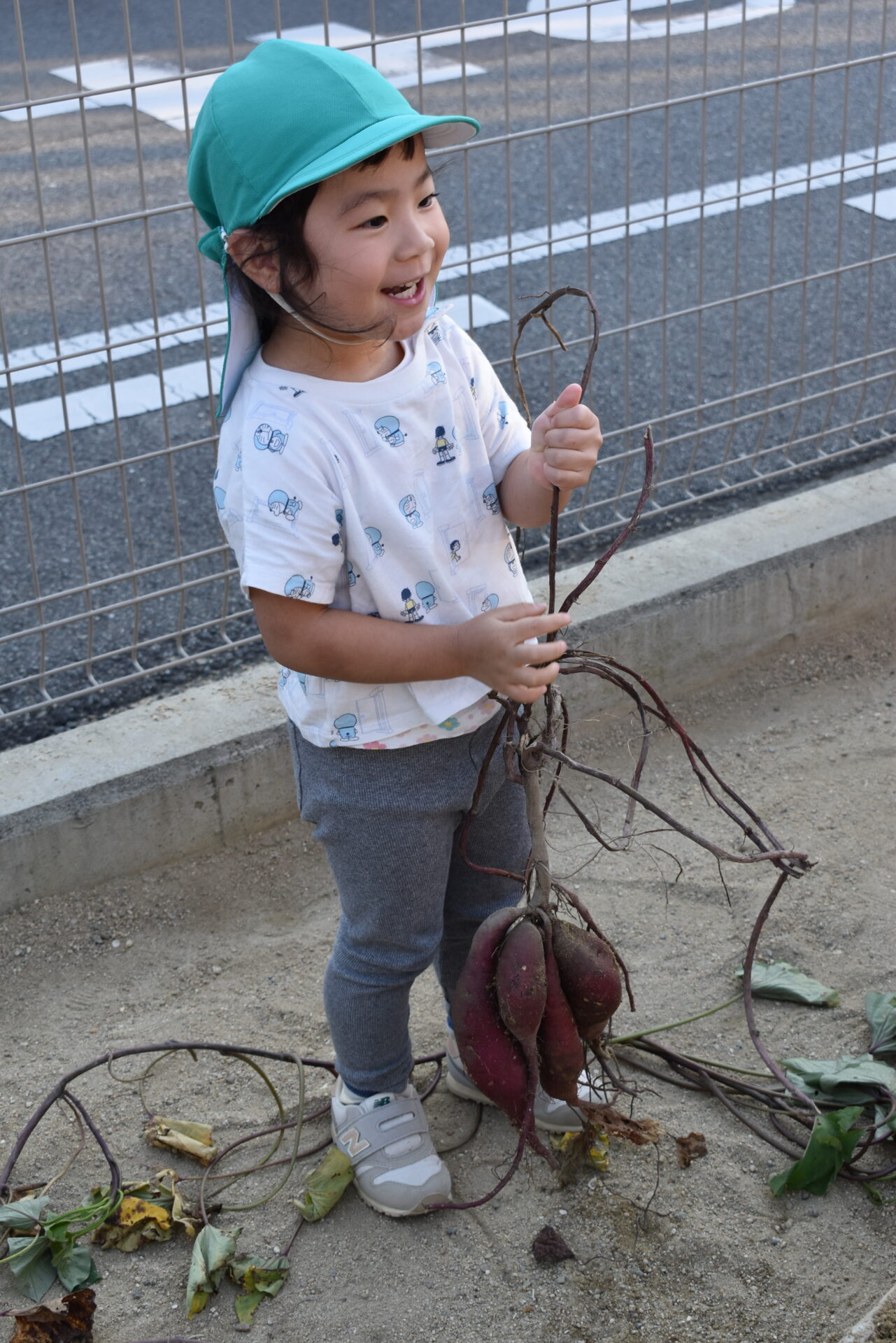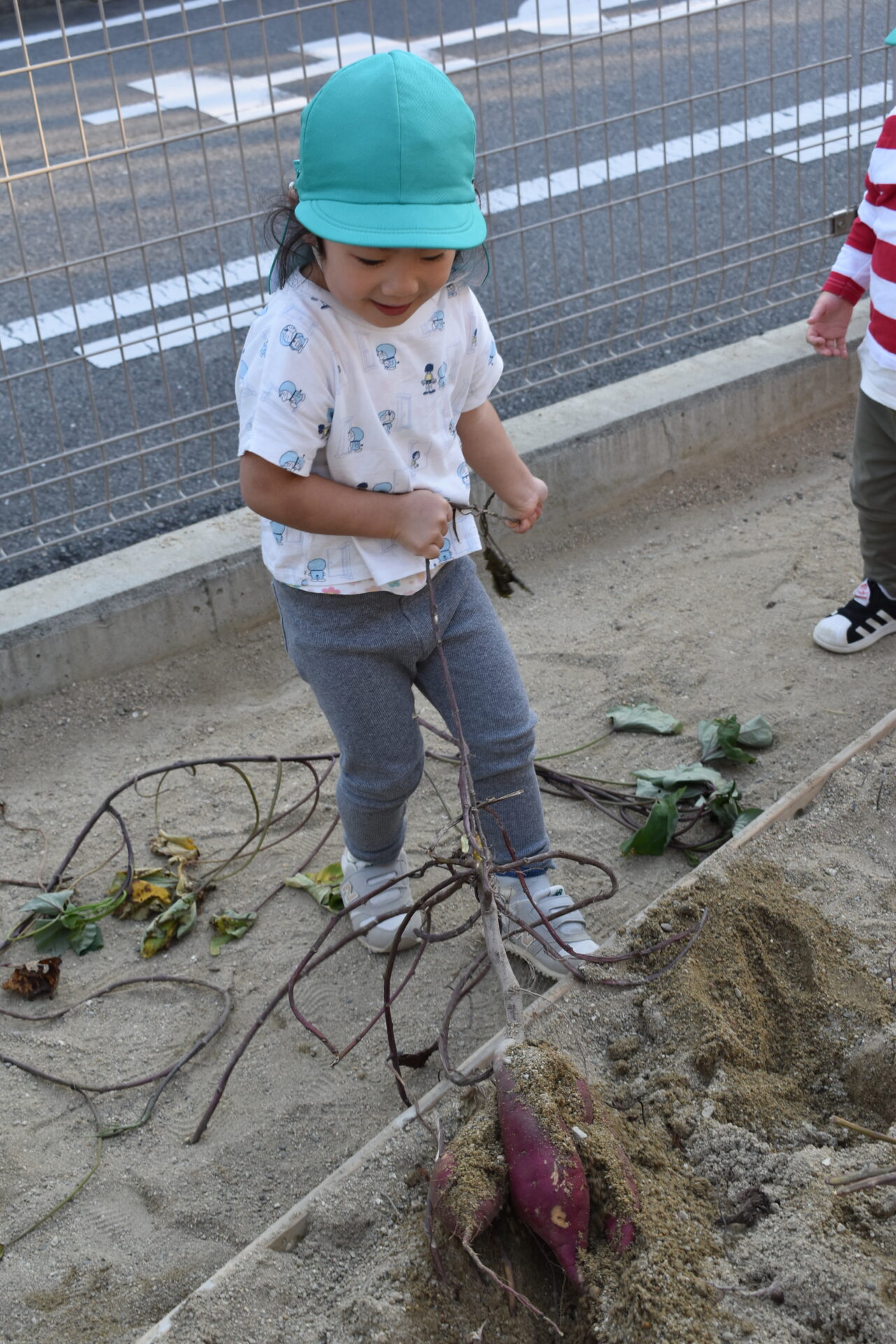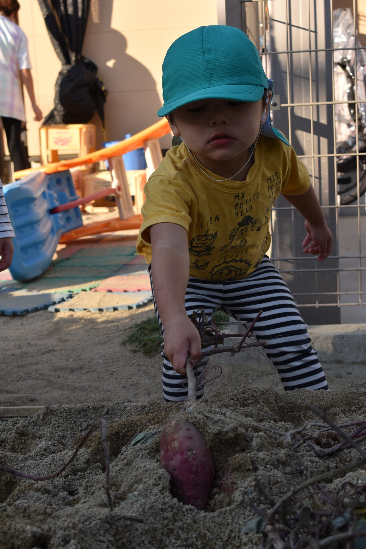 「引っ張っていいの?」と確認しながら、嬉しそうに芋を探します。