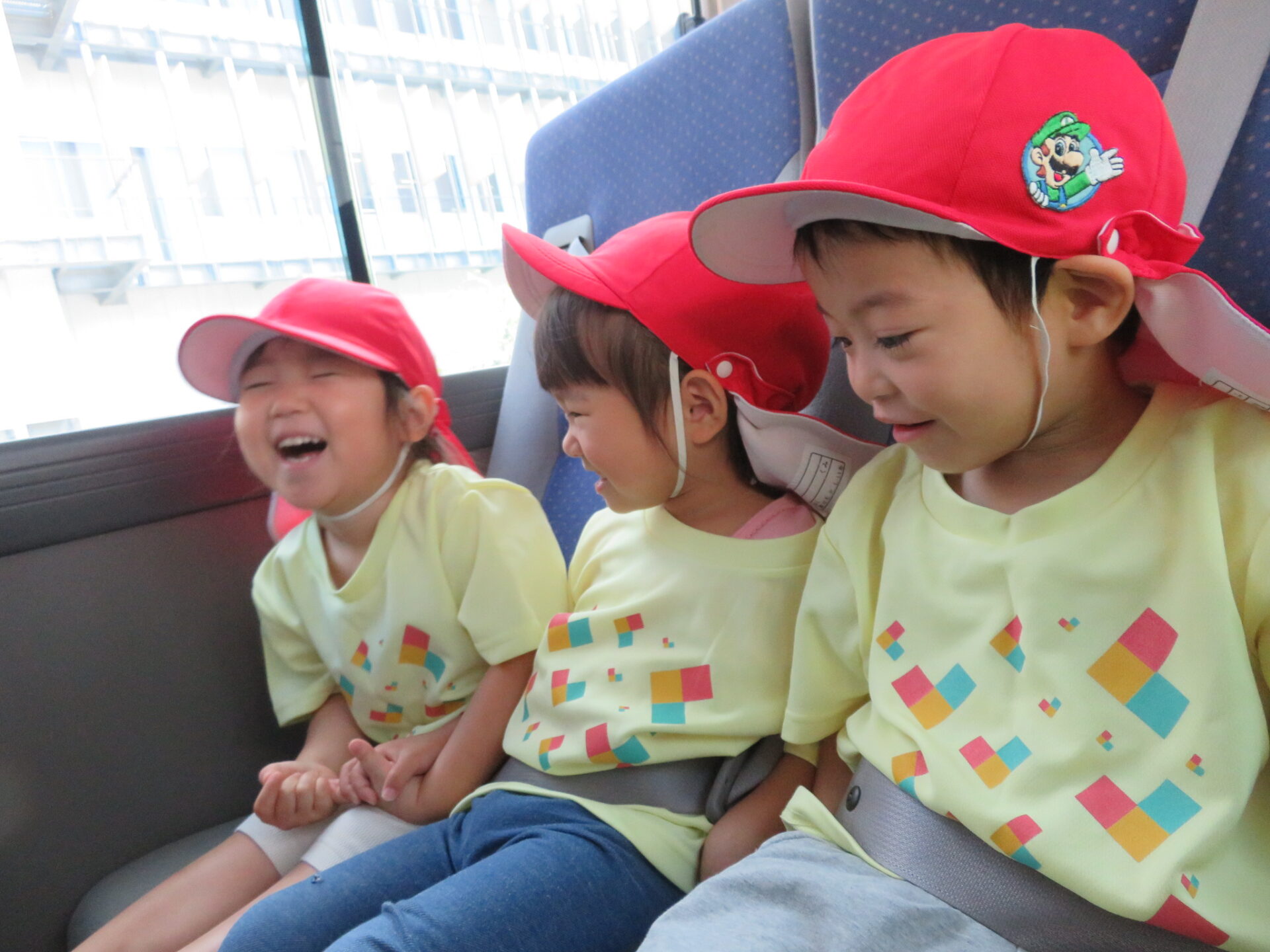 バスに乗って緊張するお友だちもいましたが、隣にいるお友だちと保育者と手を繋げば大丈夫。ほっこり安心して笑顔が見られました。バスの中では窓を覗き、色んな景色を見たり「昆虫館で何見る〜?」と会話を楽しみました。「バスごっこ」の歌を歌うお友だちもいました♪