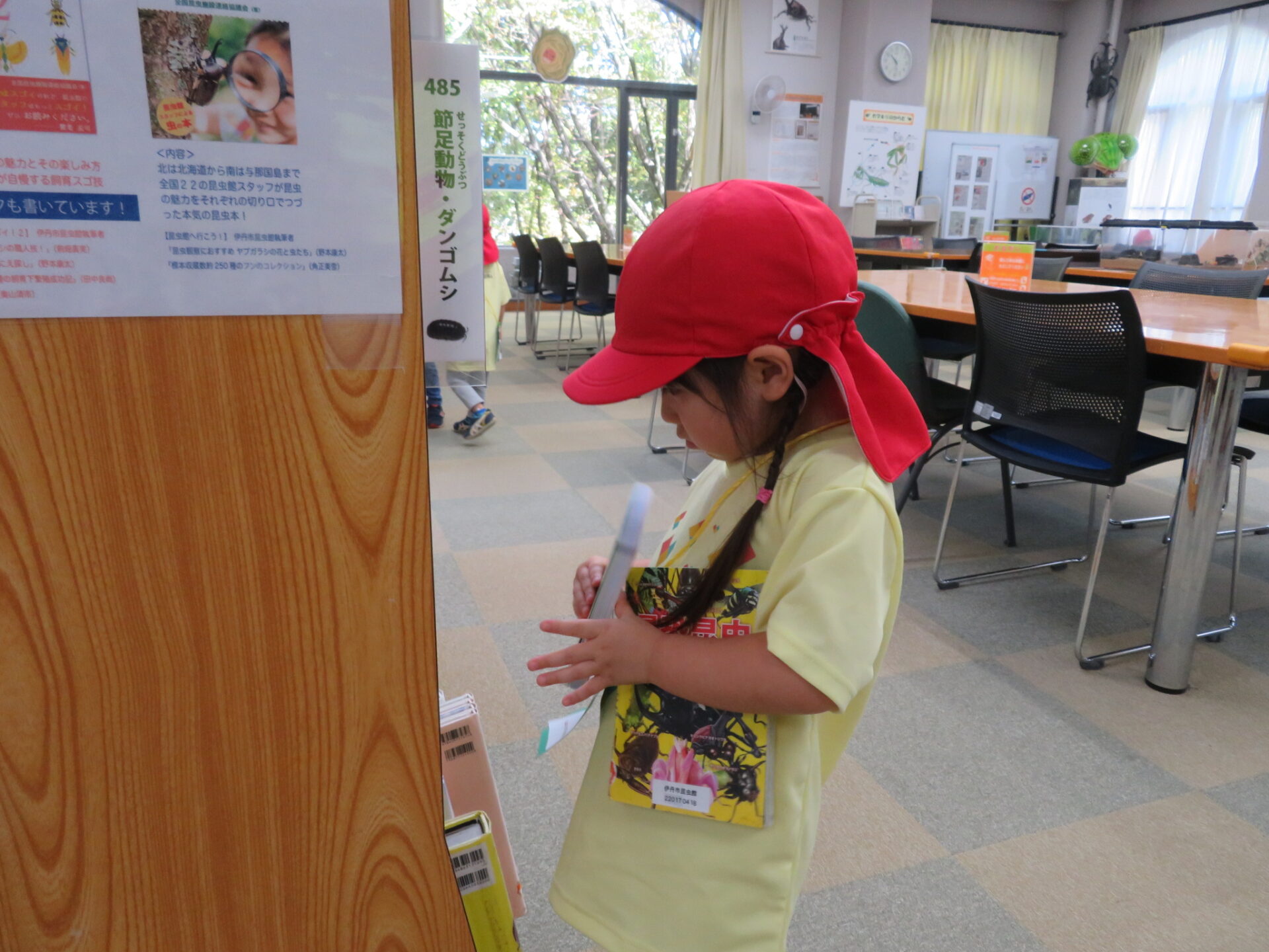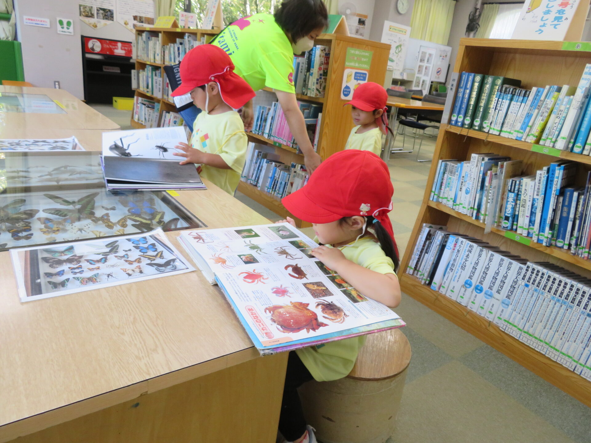 学習室では絵本や図鑑に夢中のあめ組の子どもたち。昆虫館で見た虫や今まで園庭で見たり育てた虫を探してじっくり見ていました。