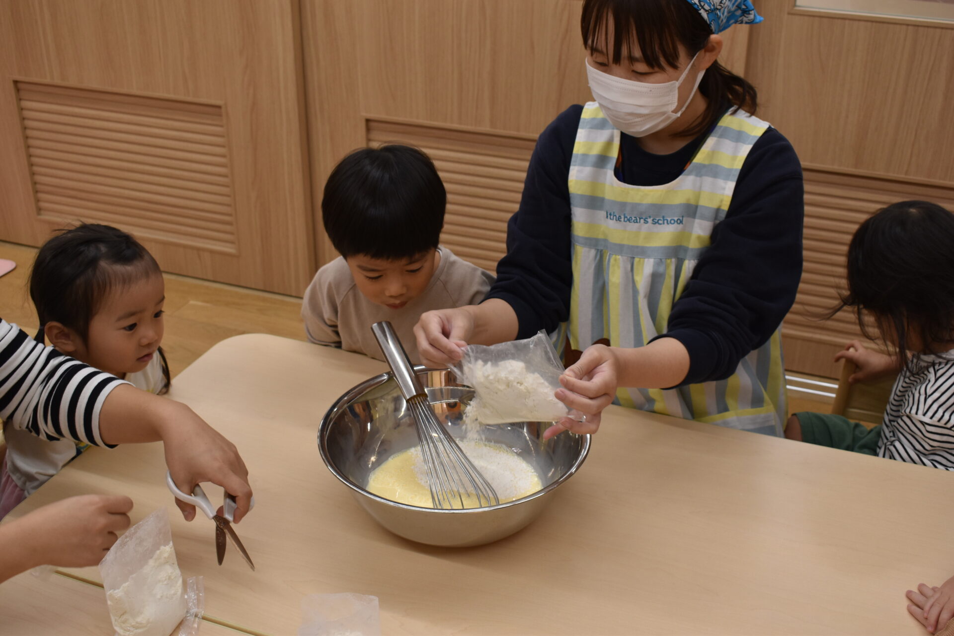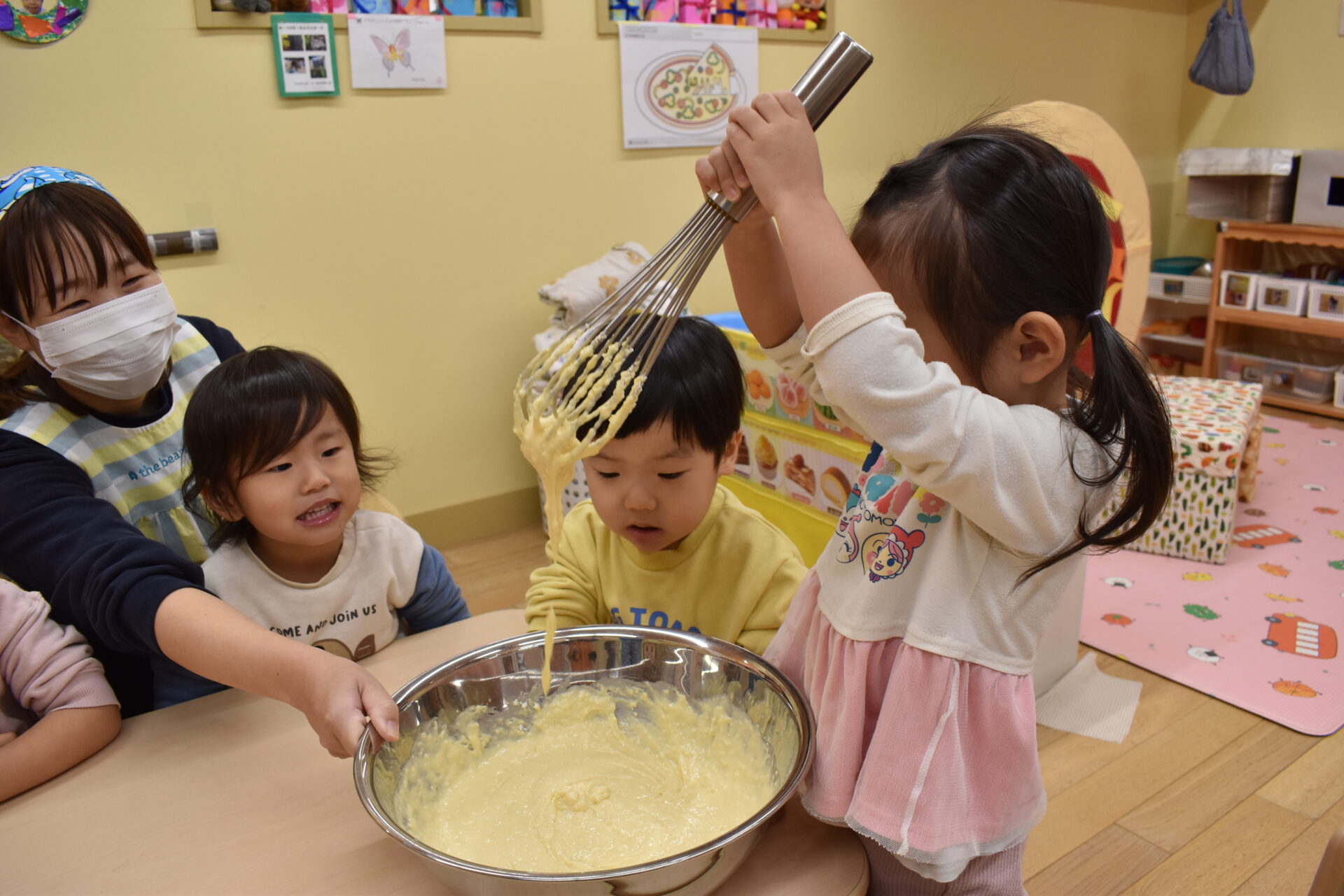 では早速みんなで力を合わせて生地を作りますよ!