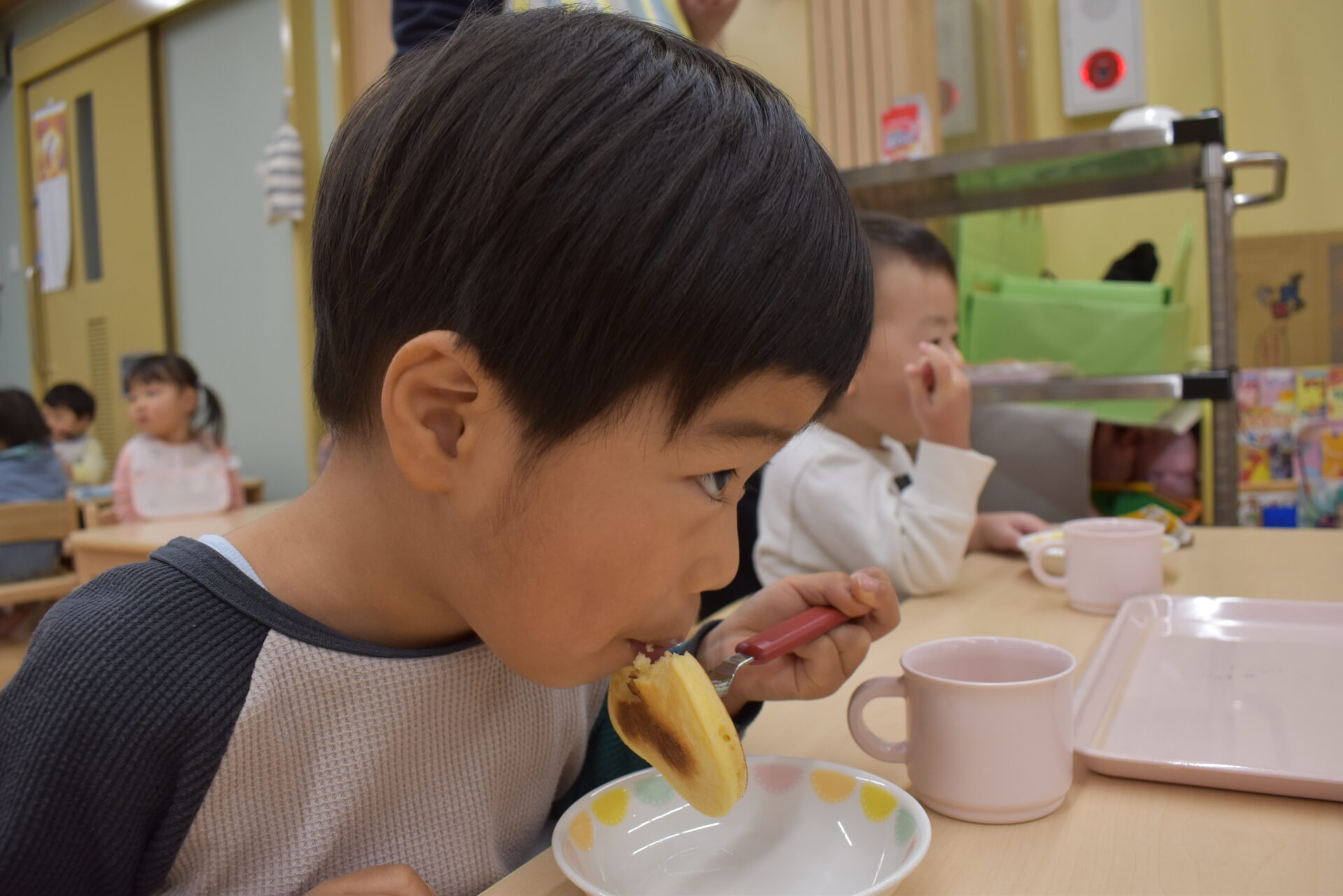 みんな口をとがらせて真剣に冷まします。早く食べたいのが伝わってきます。
