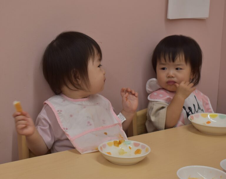 今回は、0歳児クラスの食事の様子をお届けします。 9人中8人が完了食に移行しています。 完了食になり、自分で食べてくれるようになったら、お友だちと一緒に食べています。 今日の完了食のメニューは 鶏肉と大豆のトマト煮・マカ … 続きを読む かとう主任の☆ピックアップランチ②☆