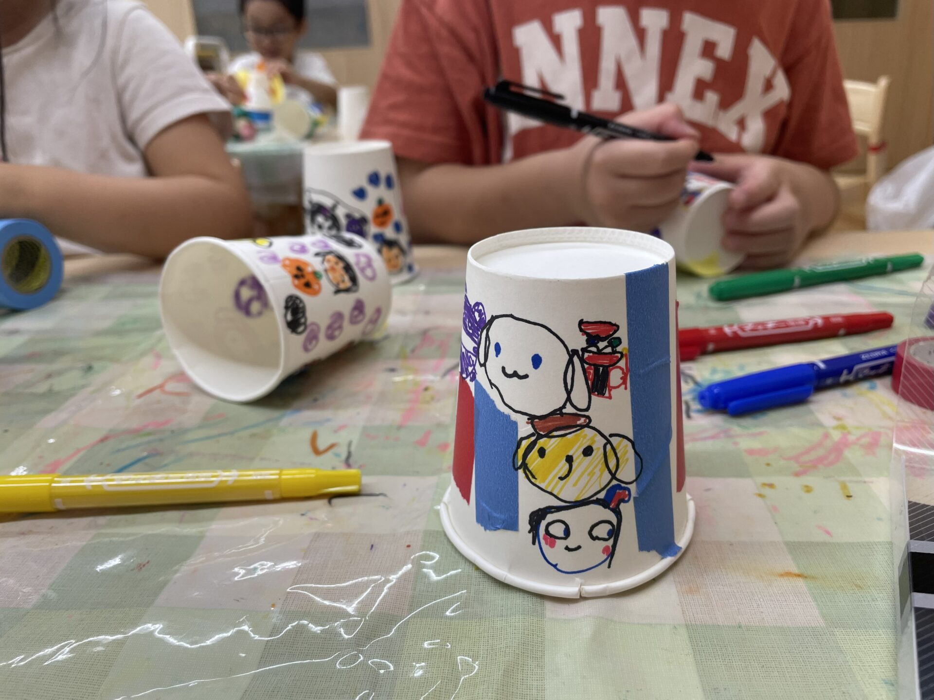 ペンだけでなく、マスキングテープや画用紙を使ってオリジナルのデザインを作っていきます。