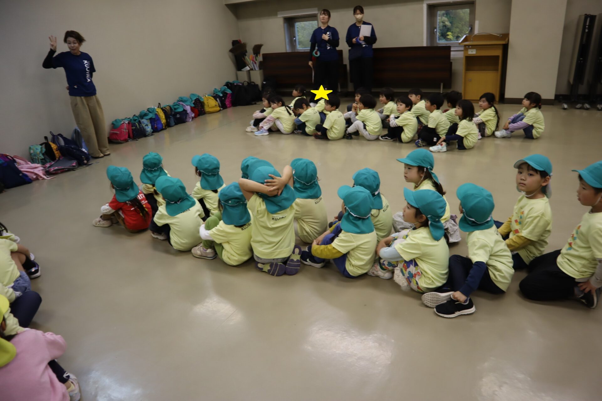 3園合同の6チームに分かれ、姉妹園のお友だちと自己紹介タイムをしました。