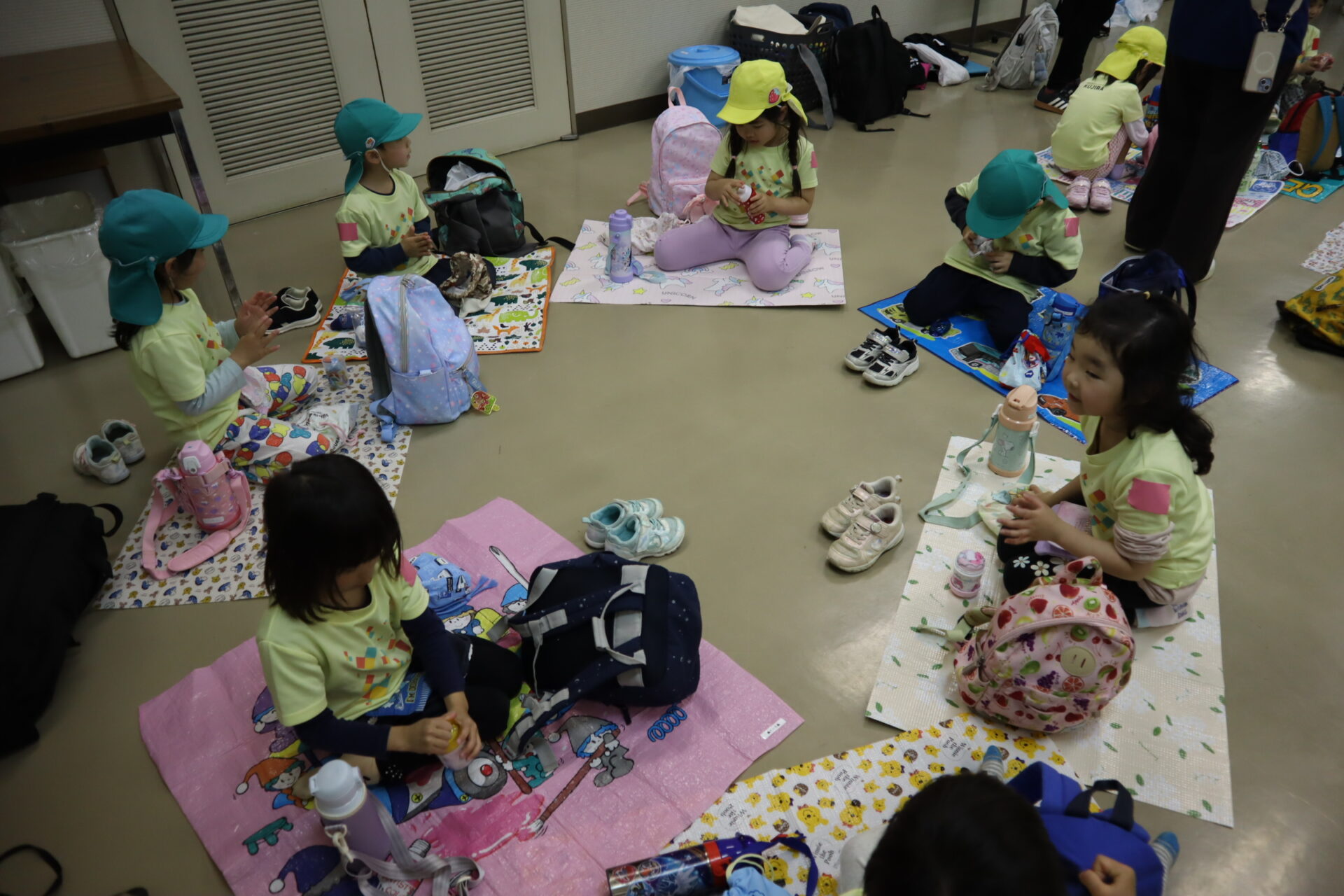 前日からお友達と持ち物の用意を確認したり、おにぎりの中身を話し合ったりしていました。
