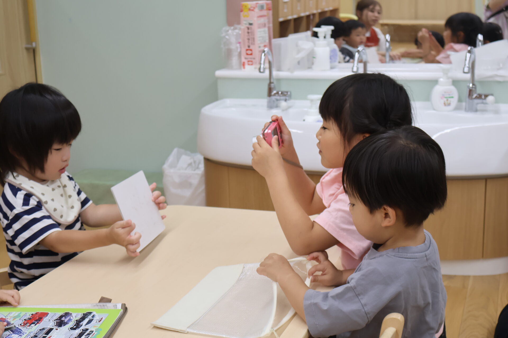 子ども達が撮影をしたことで、友だちの目線に近かったり、保育者に見せる様子とは違う素敵な姿を収めることが出来ていました✨