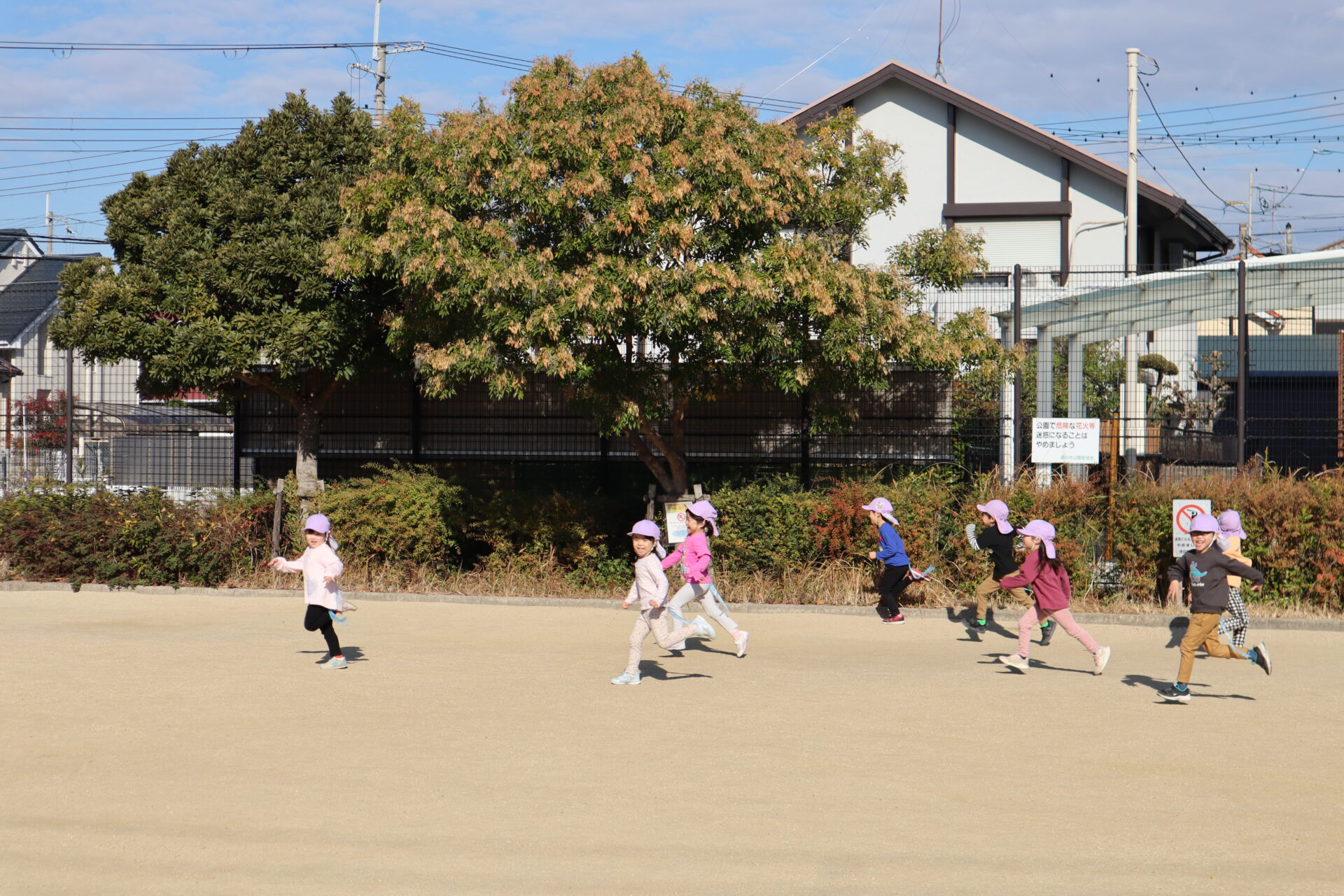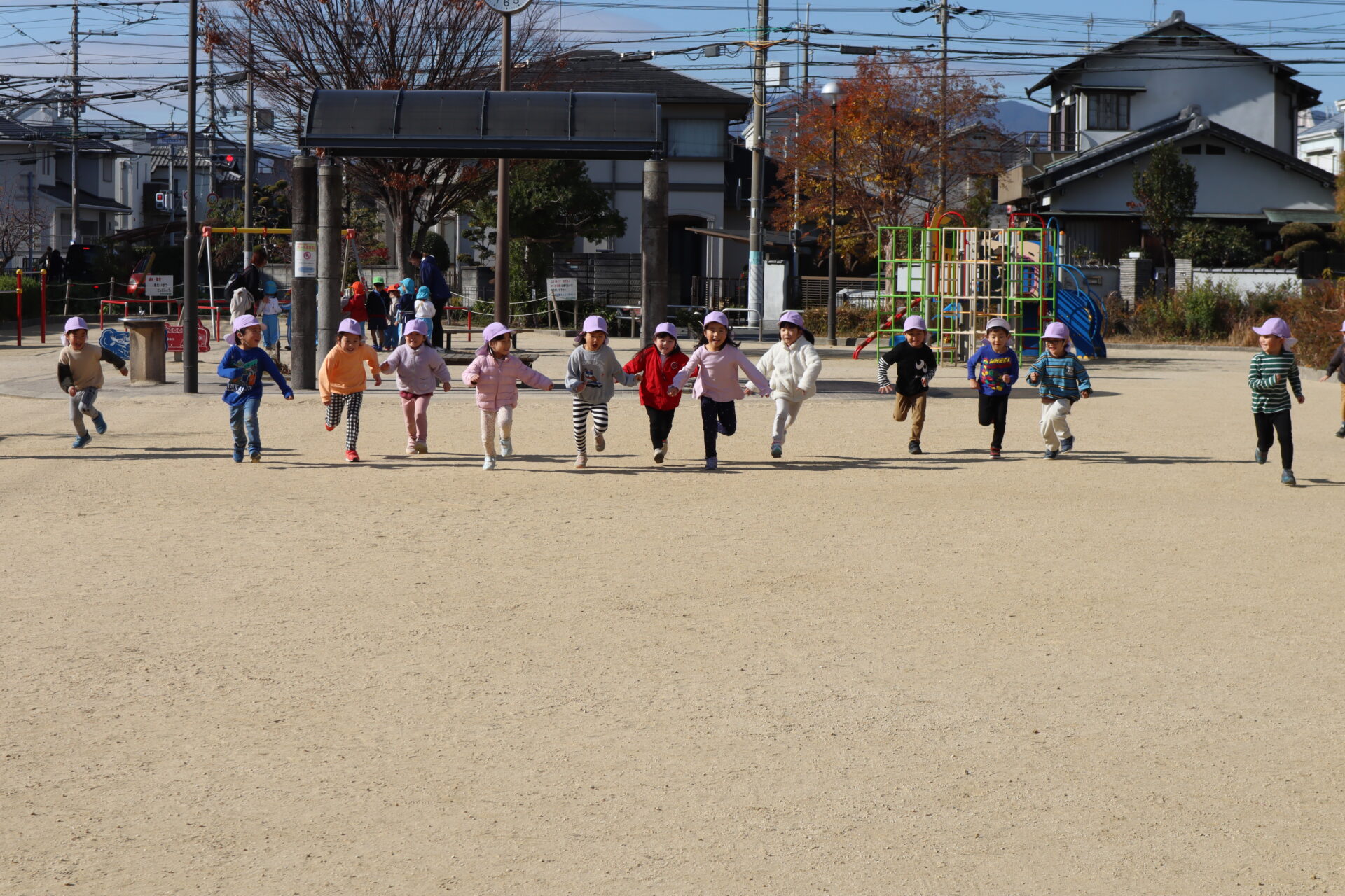 しっぽ取りを終え、最後にみんなで保育者の所まで「かけっこ」をしました。