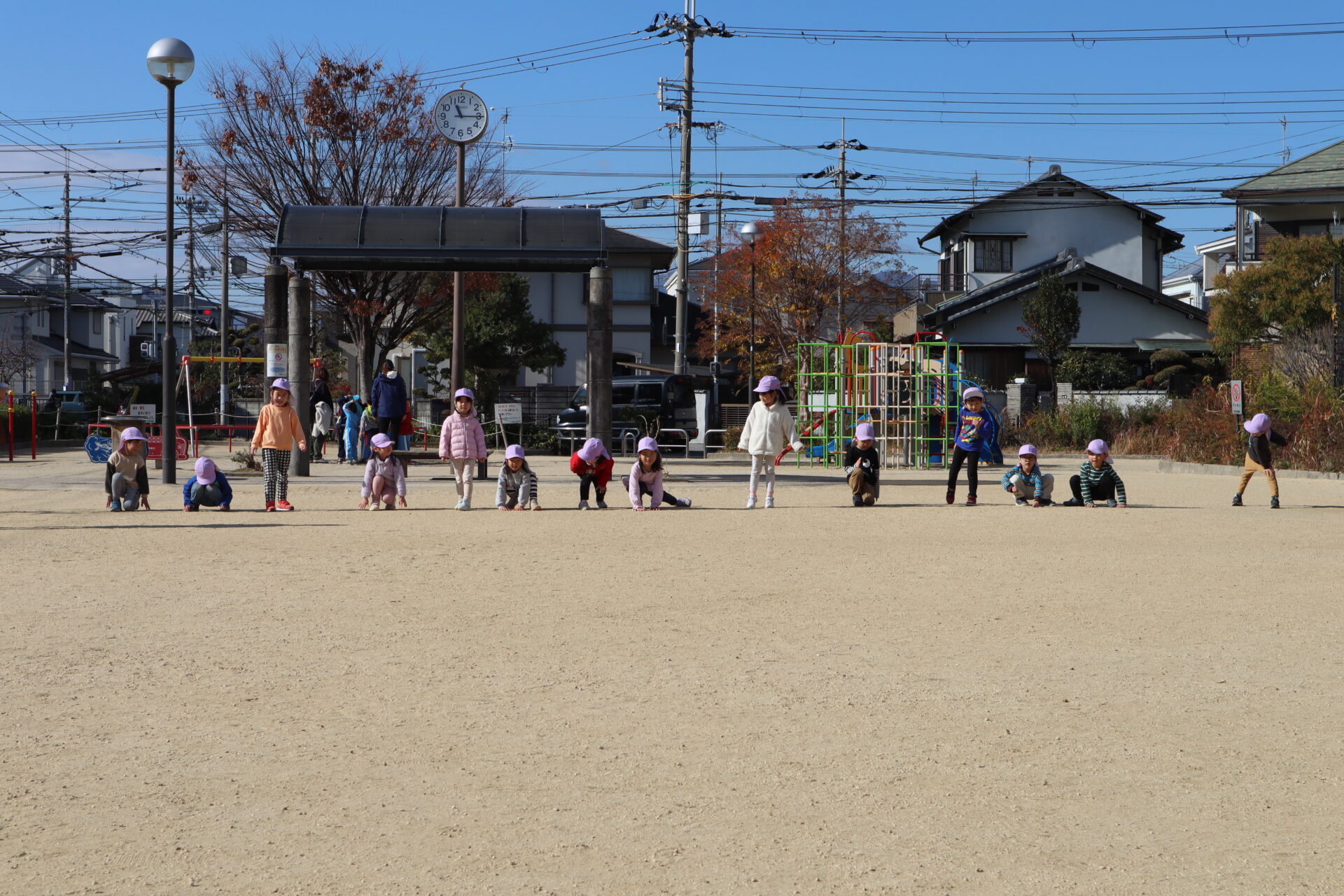 保育者が「位置について!よーい」と言うと、走るポーズも上手に取れていました!