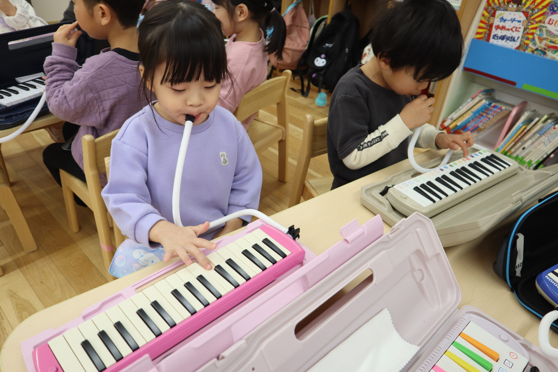 「自分のピアニカを取りに行ってね」と保育者が声を掛けると、嬉しさやわくわくしているのが表情にでていました。