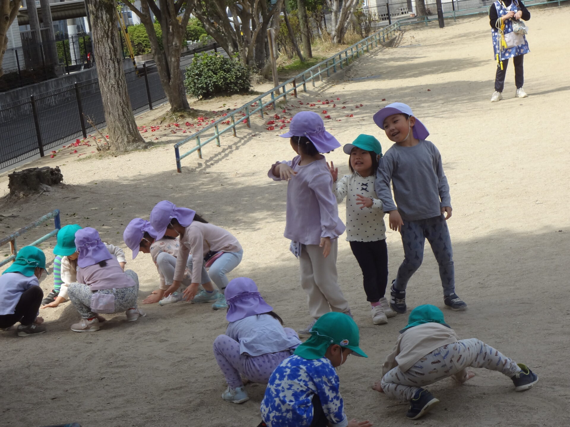 戸外で遊ぶことが好きな子ども達なので、新クラスになって早速お散歩に行ってきました!