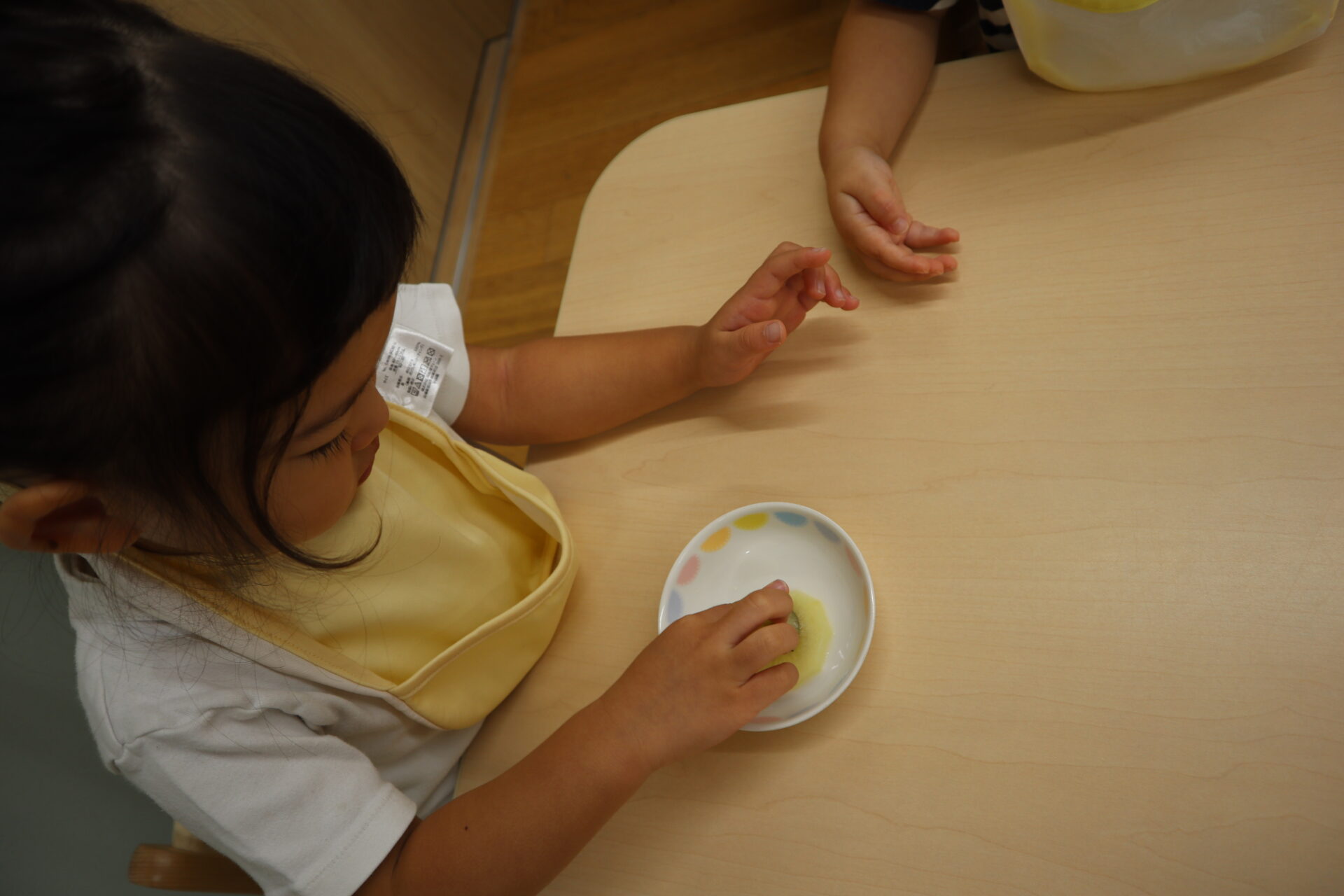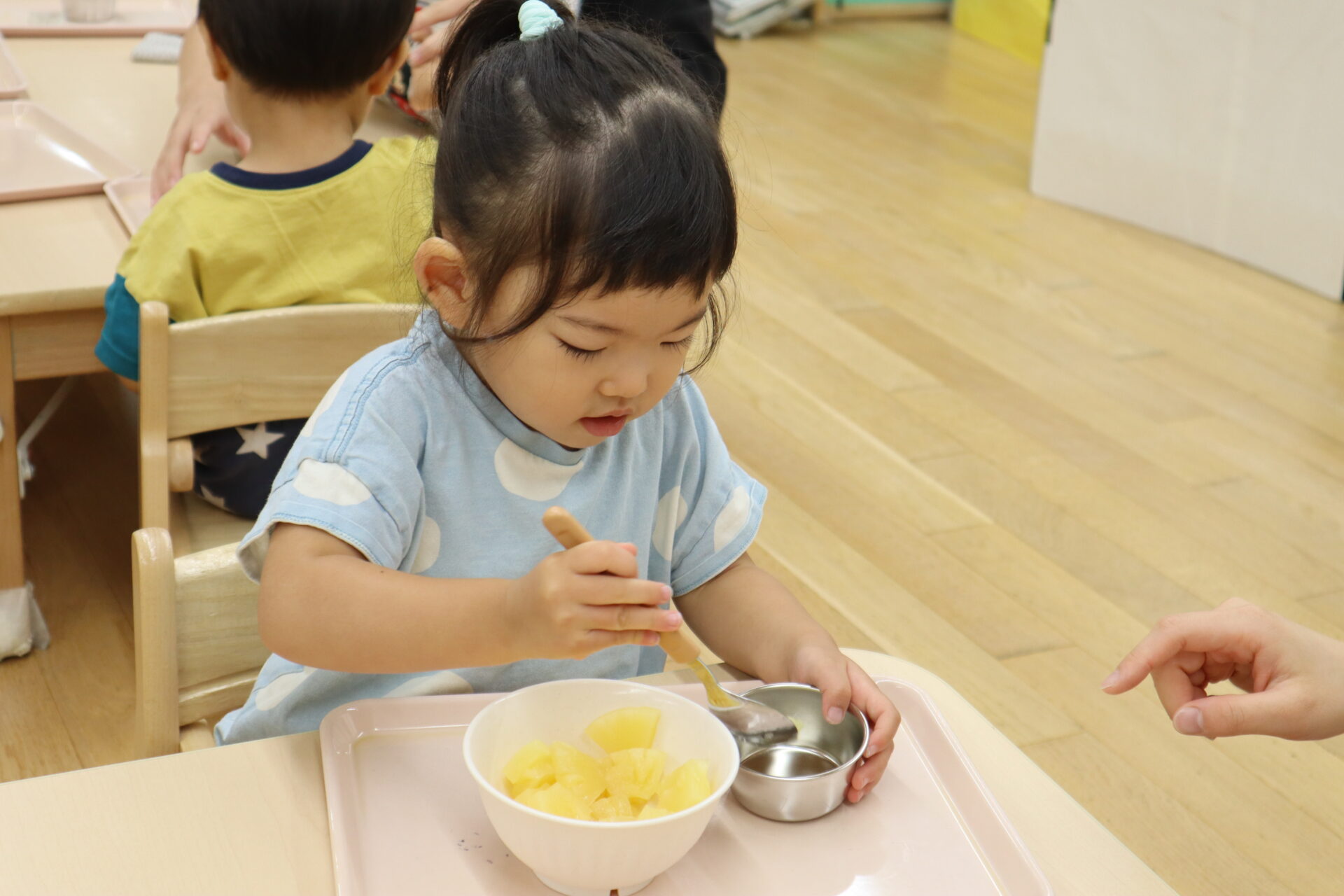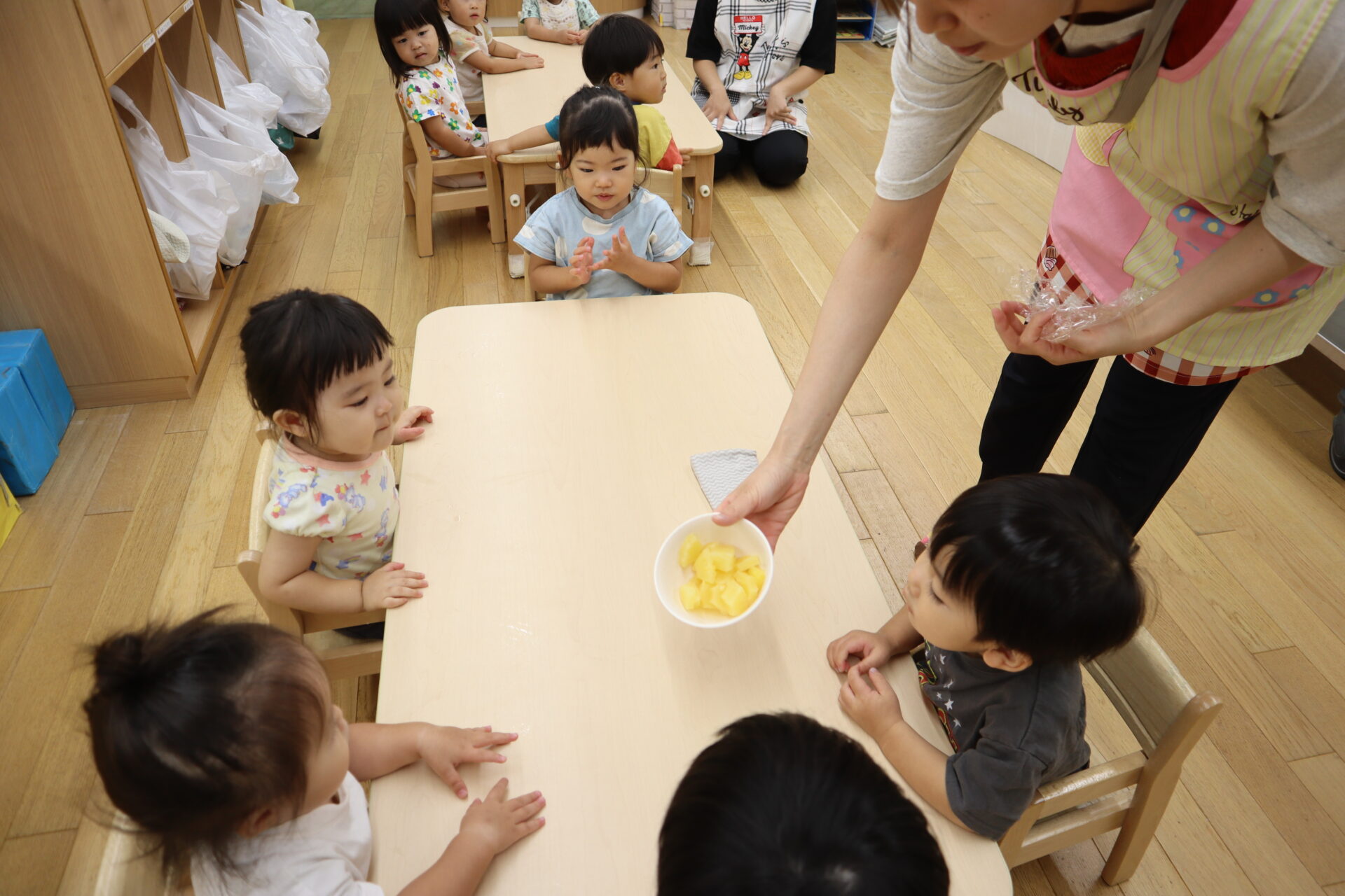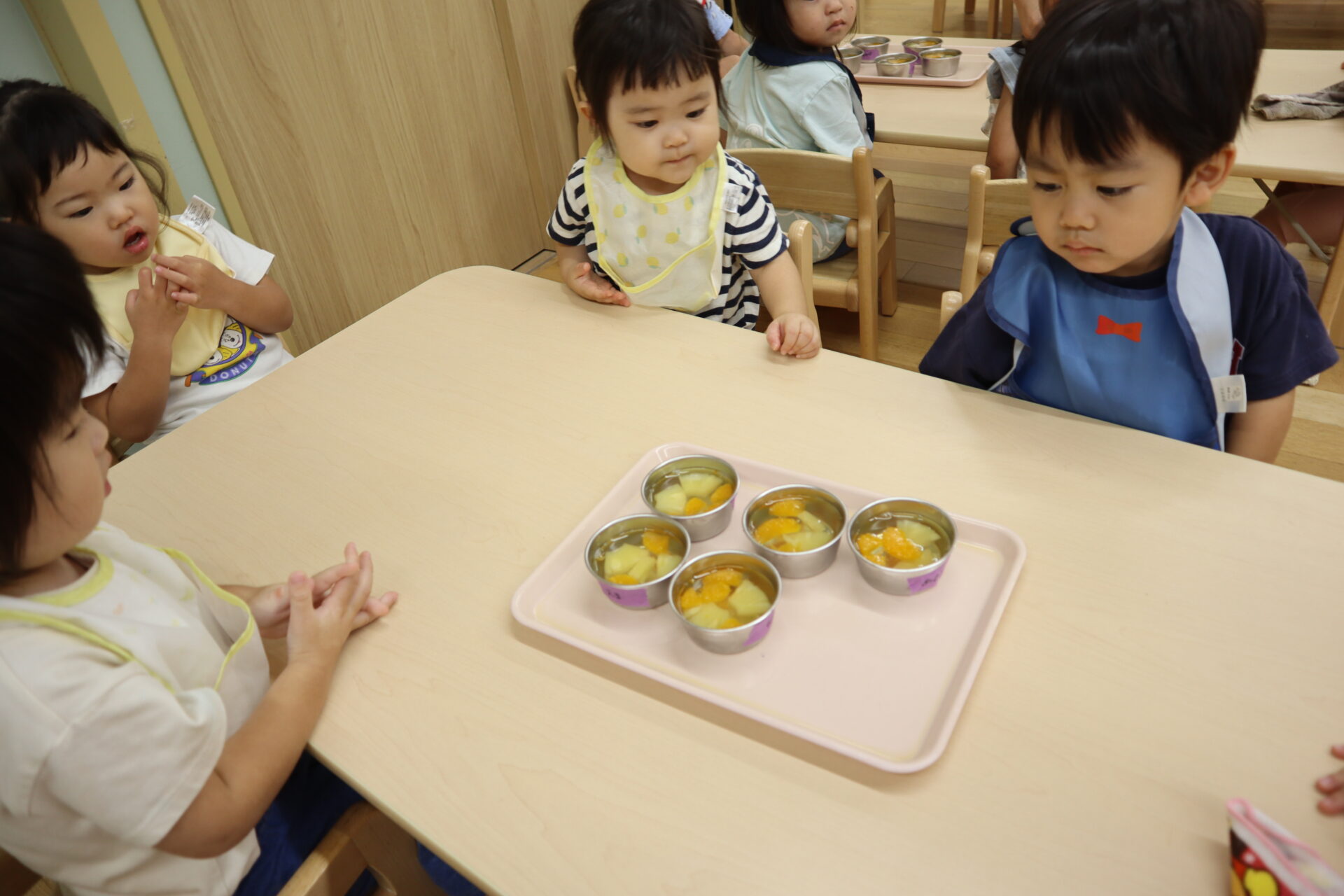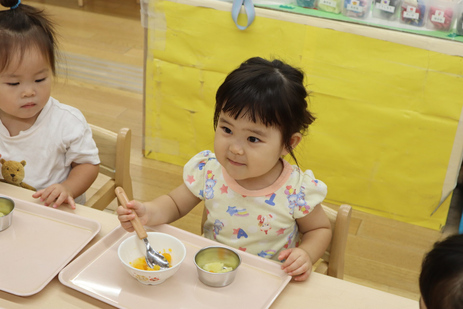 「美味しそう!」「これ〇〇ちゃんの?」とお話しが止まらない子ども達です。